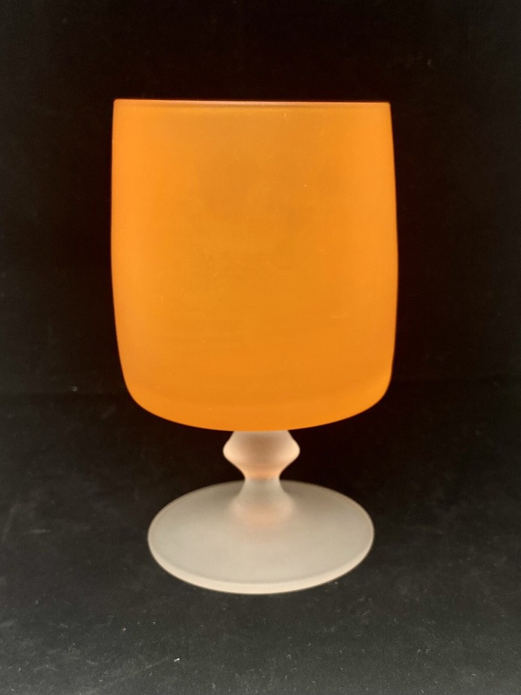 Mid Century Frosted Orange Goblet White Stem Wine Glass Excellent vintage pre-owned condition. Please see pictures for condition. Ask questions before bidding. Will be well packed and shipped quick.