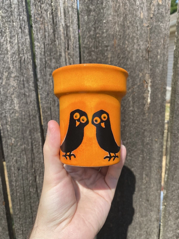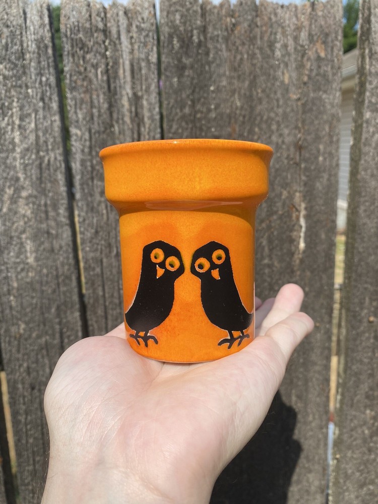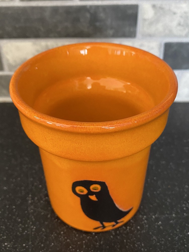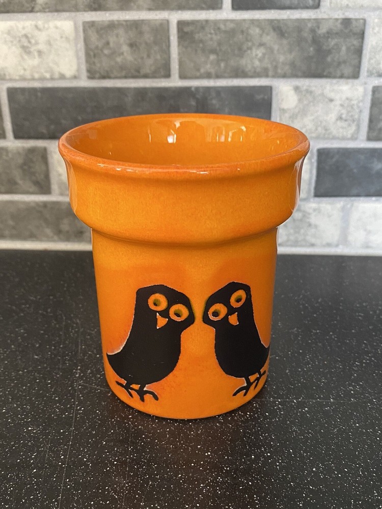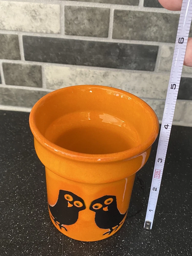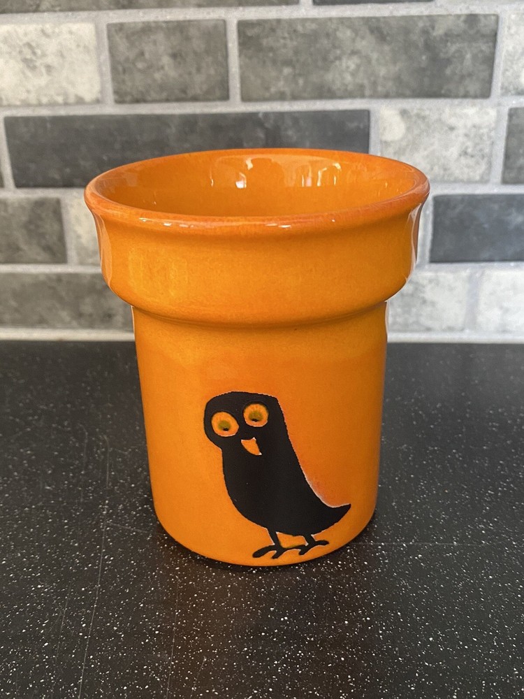 Very scarce mcm Wächtersbach Vase featuring owls. Halloween theme. Orange and black colorway, measurements provided. Iv only seen one other listed ever and they are asking $700 for the set. This is a single vase. Please see photos for condition sold as is. Shipped quickly and secure!