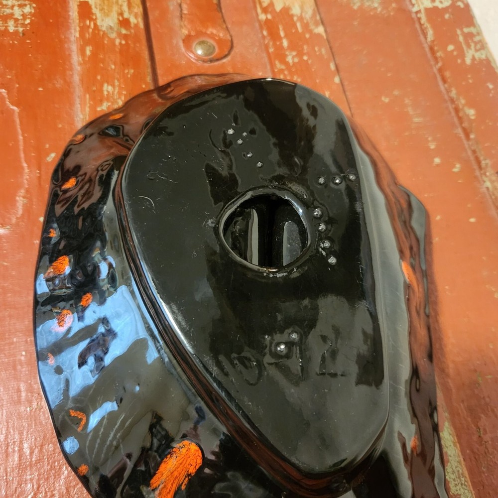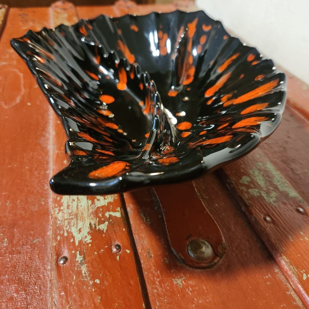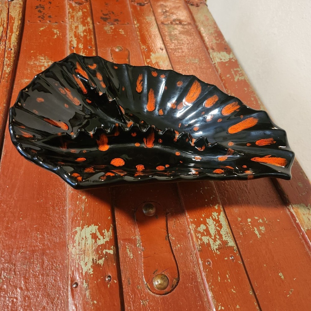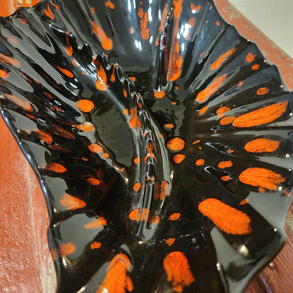 Mid Century Handmade Ashtray Black and Orange Drip Holds 12 Cigarettes Condition: Excellent used Weights 2 lbs. 4 oz. Measurements: 12" L x 8" W x 3" H...