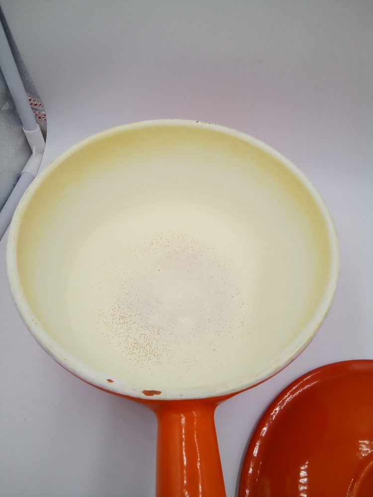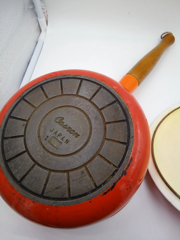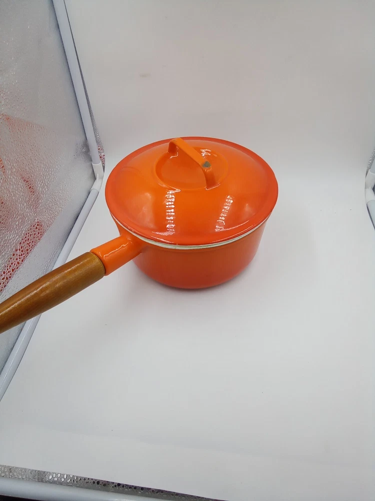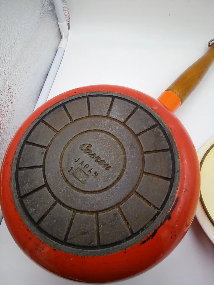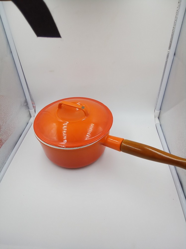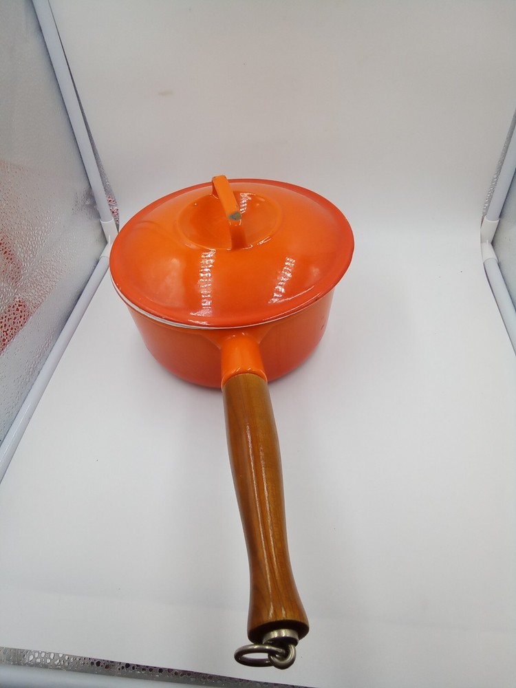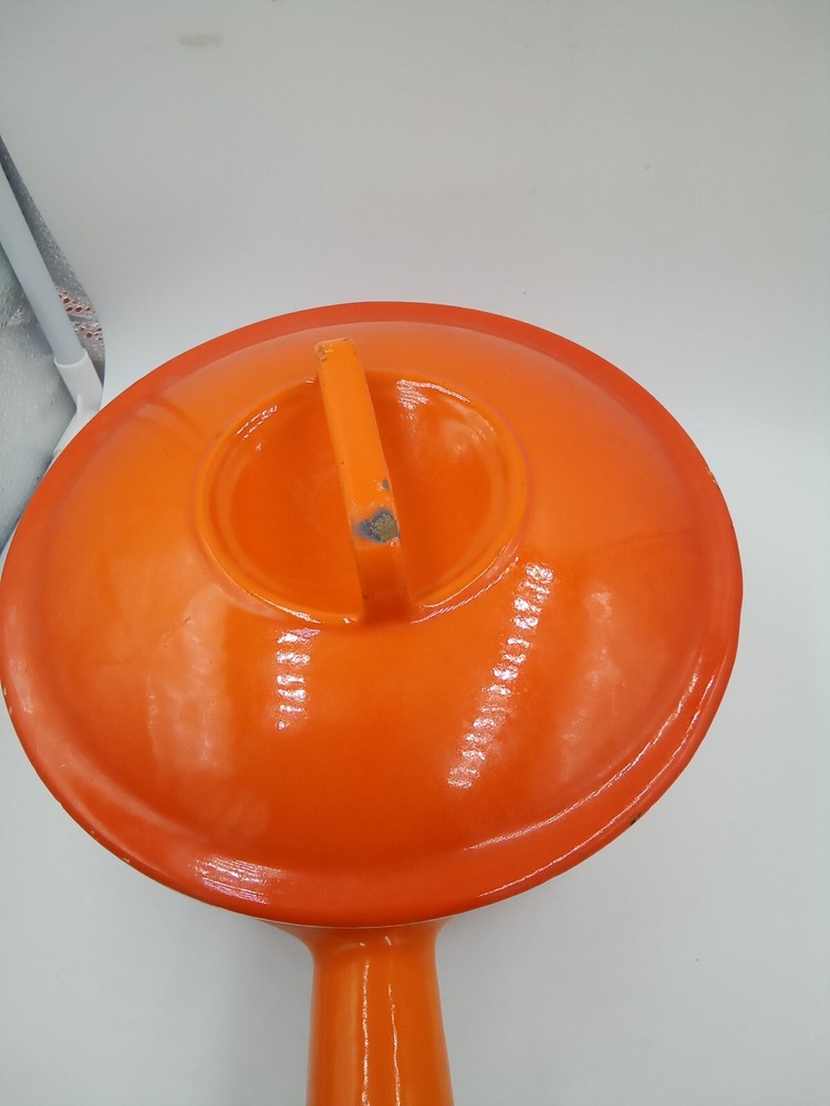 Mid Century MCM Flame Orange Red Carson Pot Made In Japan #1. Has scratches and ware...