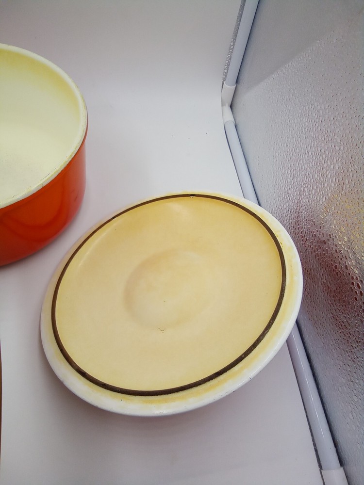 Mid Century MCM Flame Orange Red Carson Pot Made In Japan #1. Has scratches and ware