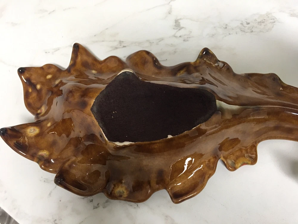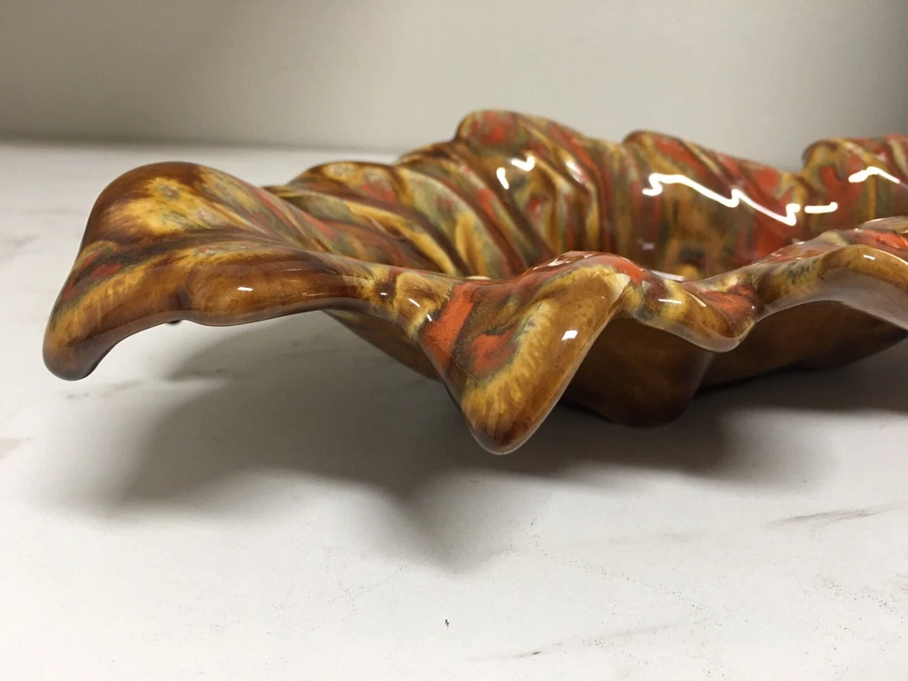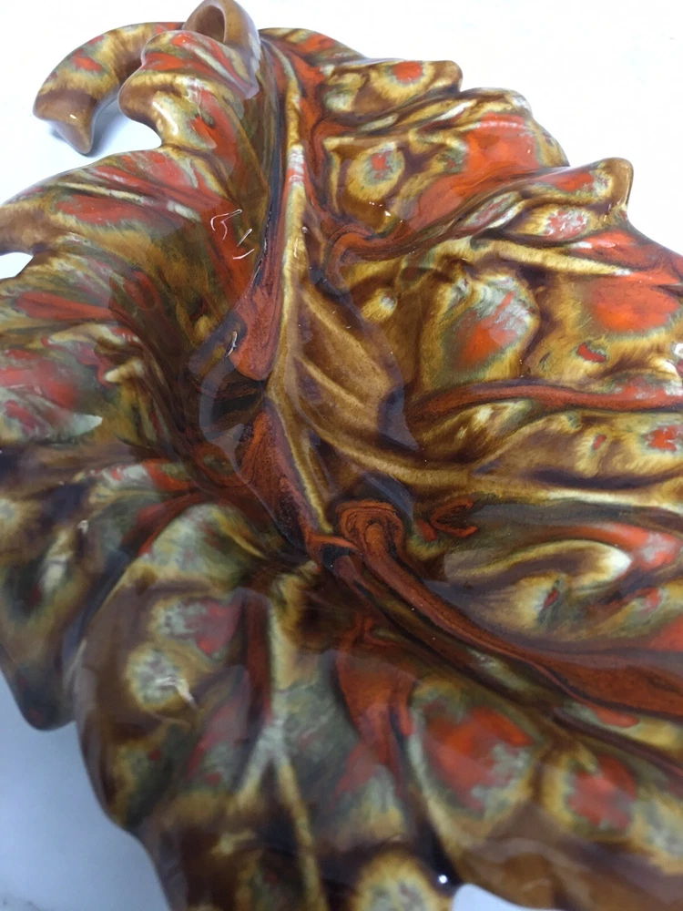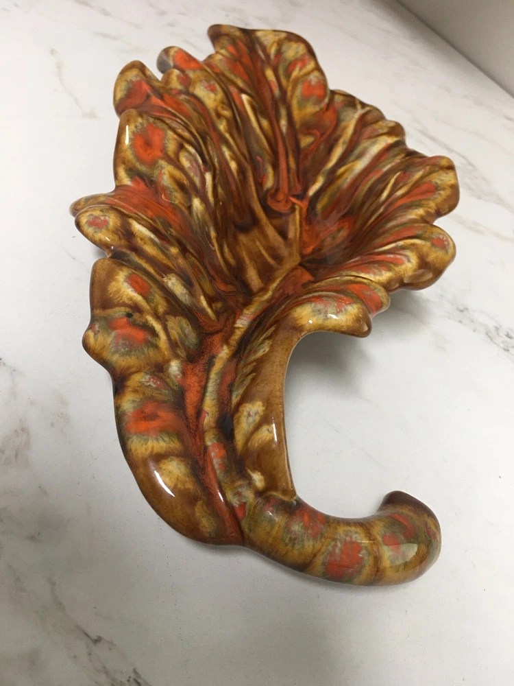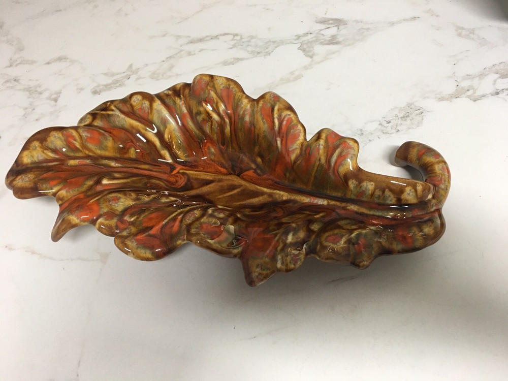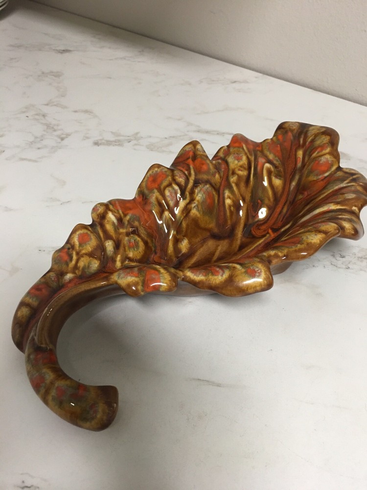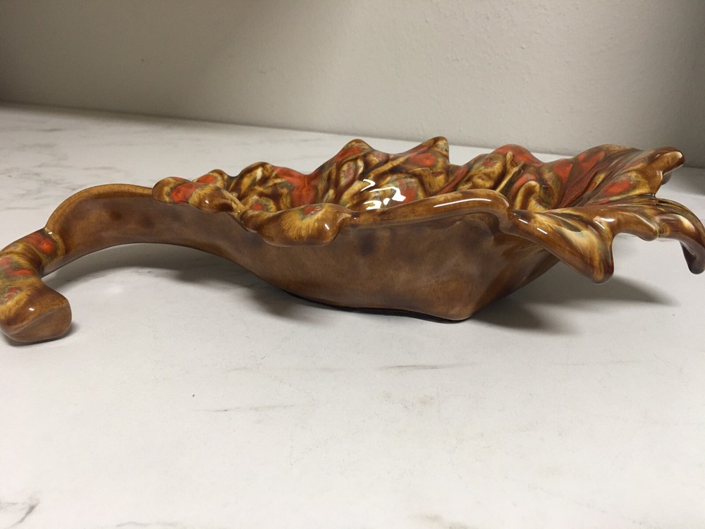 Mid Century Mod Ceramic Pottery Drip Glaze Brown Orange Leaf Dish Bowl Retro Beautiful mid century leaf shaped dish 14" long, 7" wide and 2.75" tall In excellent vintage condition, no chips, cracks or scratches, item has probably not even been displayed or used since its creation in the mid 1960s From an estate of a ceramics artist. Her items were created in 1964-65 and stored away until a recent estate sale. Thank you for shopping with us, we so appreciate your business! We try to ship all items within 24 hrs of payment. Domestic tracking and insurance is included with your purchase. Domestic Priority Mail delivers nationwide in 1-3 days. We offer combined shipping in order to save you money on multiple purchases, purchased at the same time. Please contact us for combined shipping quotes. If for some reason you are not completely satisfied please contact us directly so that we might remedy the situation. Our very positive feedback and sales history are both proof that we will take care of you without any problem or hassle. In order to be kind to the environment, we recycle and reuse clean packing materials. New items arrive weekly, please click "Save Seller" within any listing to get new goods alerts or to find our store again. To visit our Ebay store, just Google: "A Tapestry Of Life Ebay"