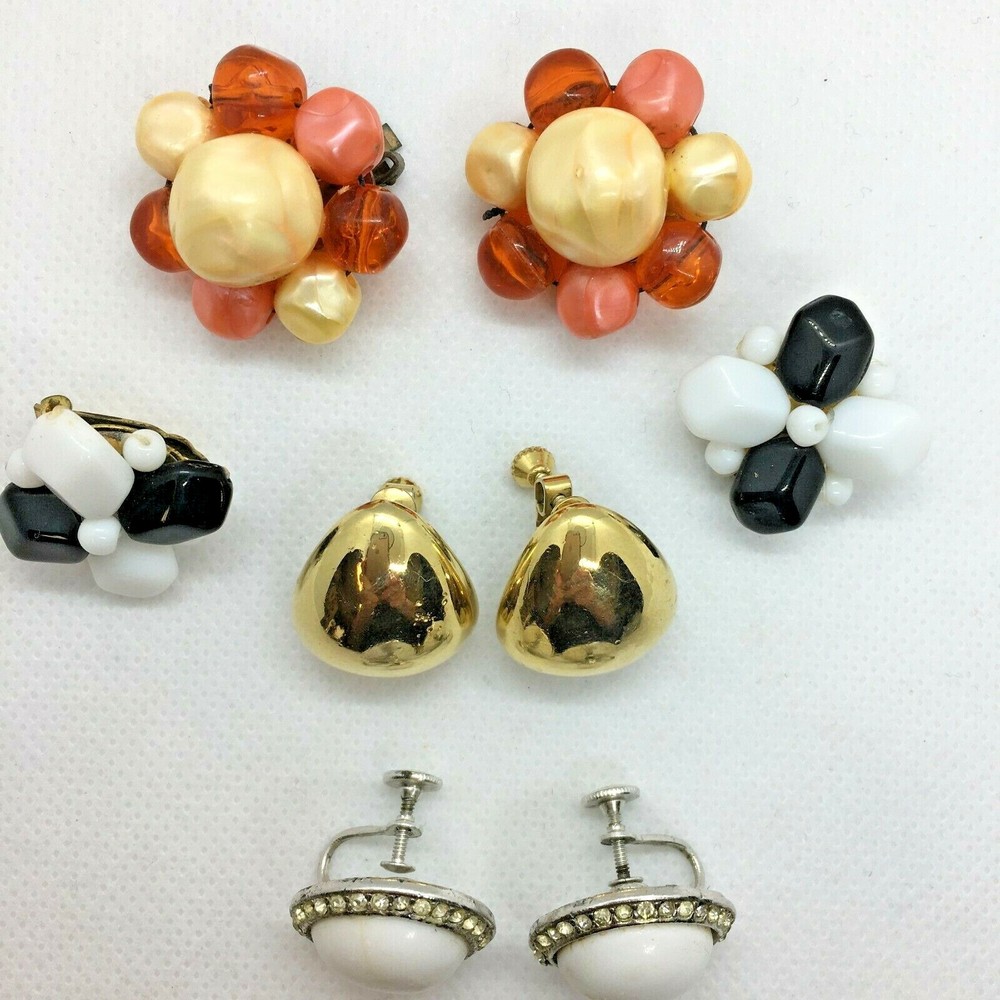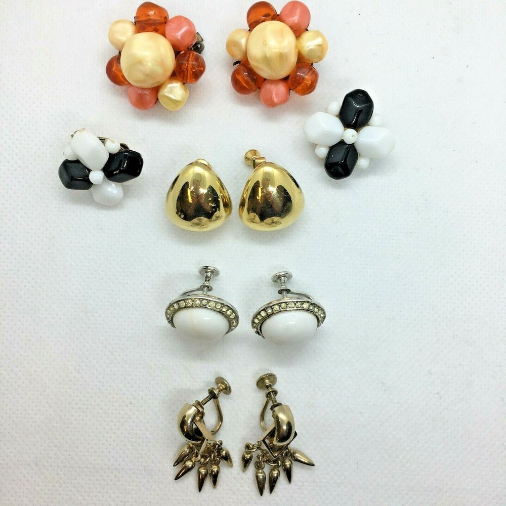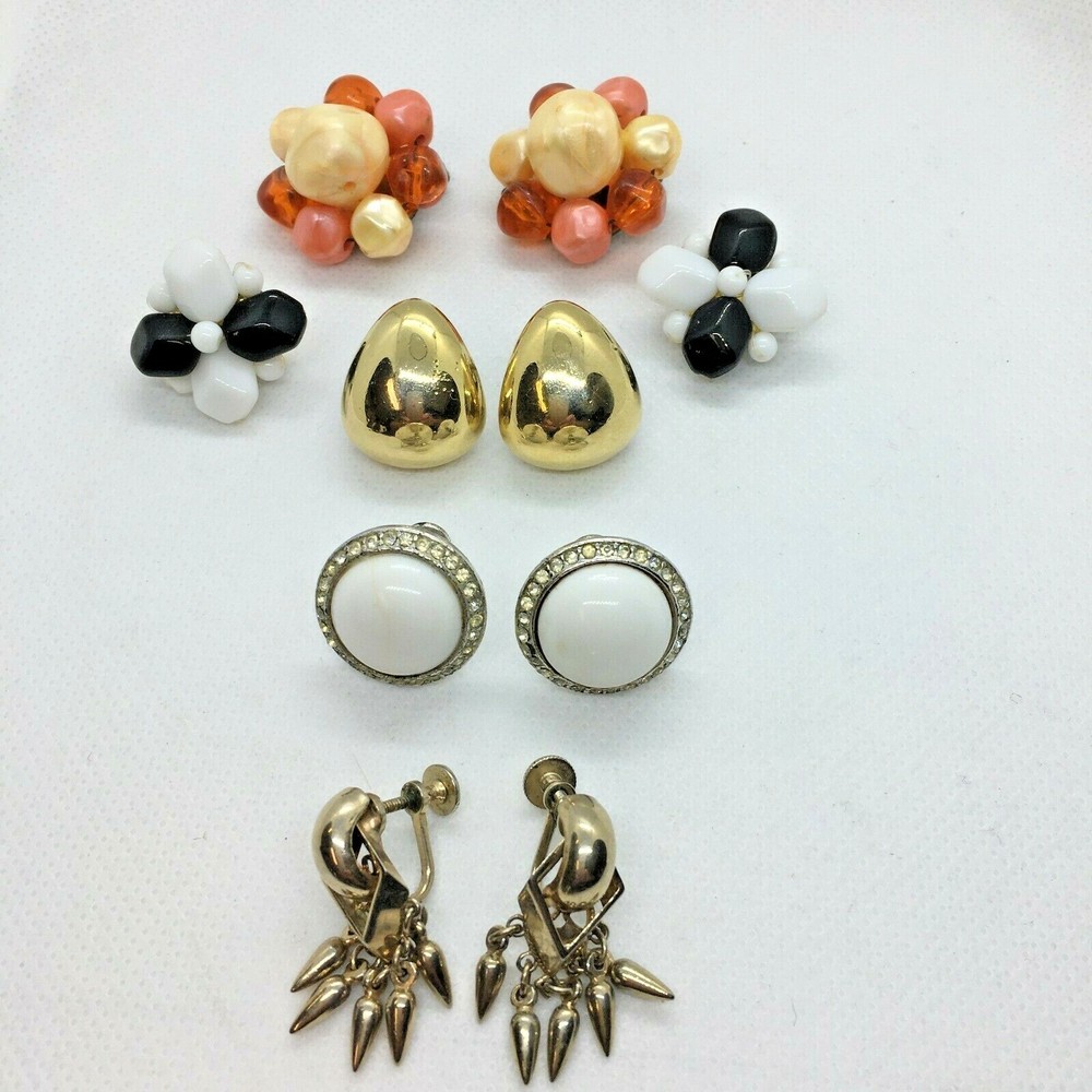 5 Pair Lot of Retro Mid Century Mod Earrings Clip-on & Screwback The goldtone pair is signed Napier. The others are unsigned beauties. From a Nashville TN estate sale.