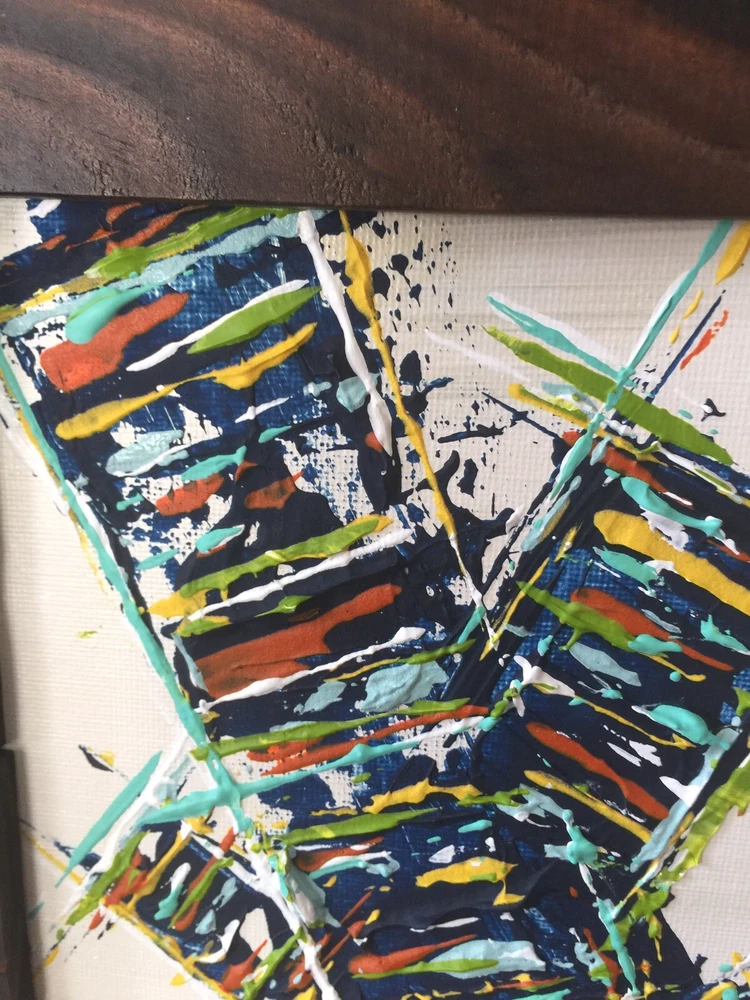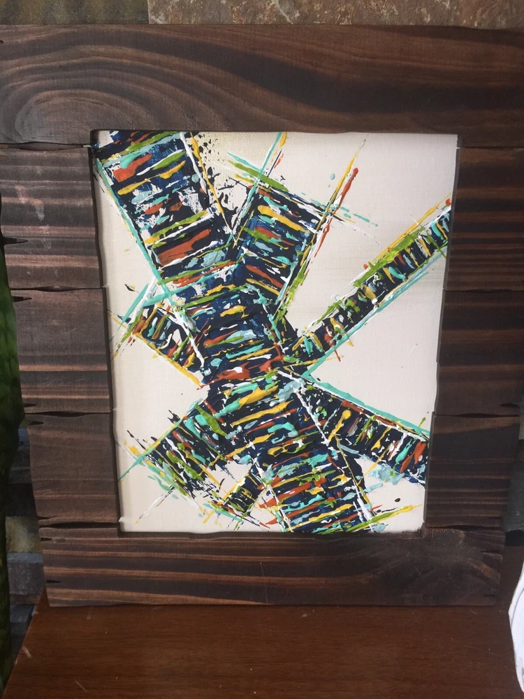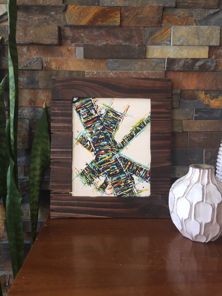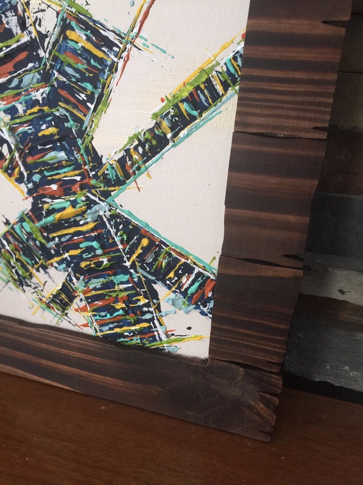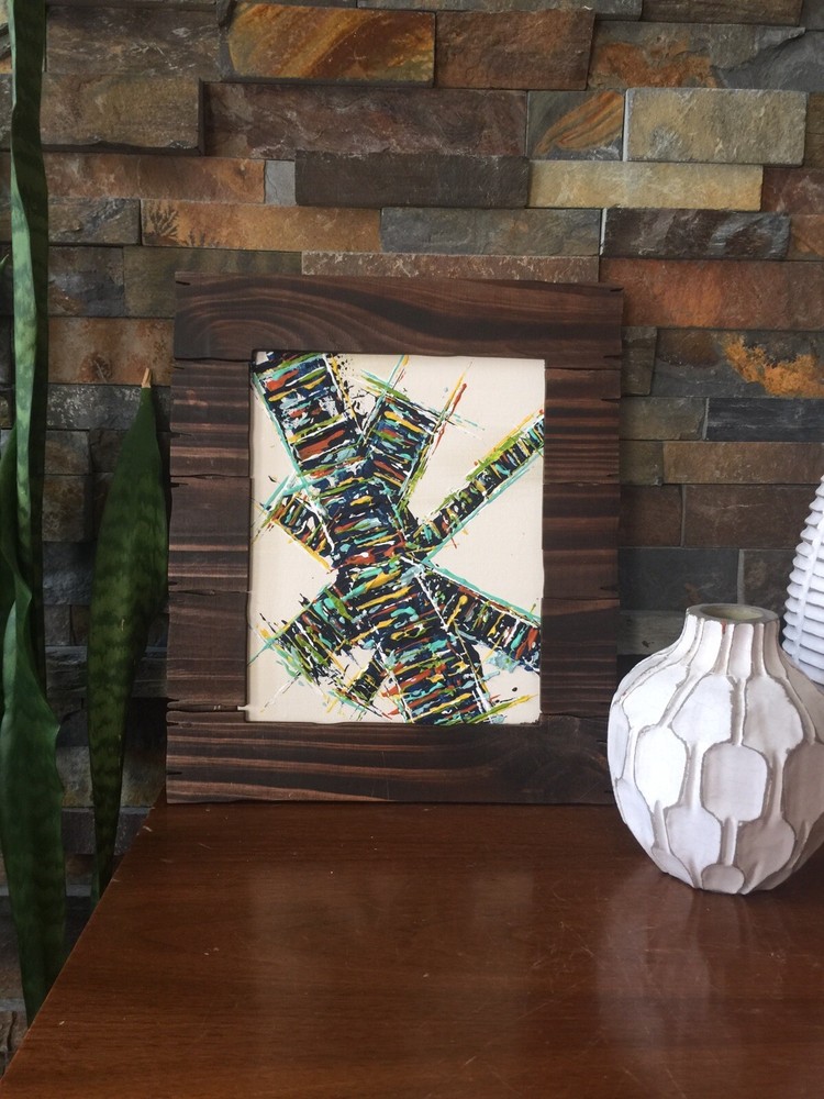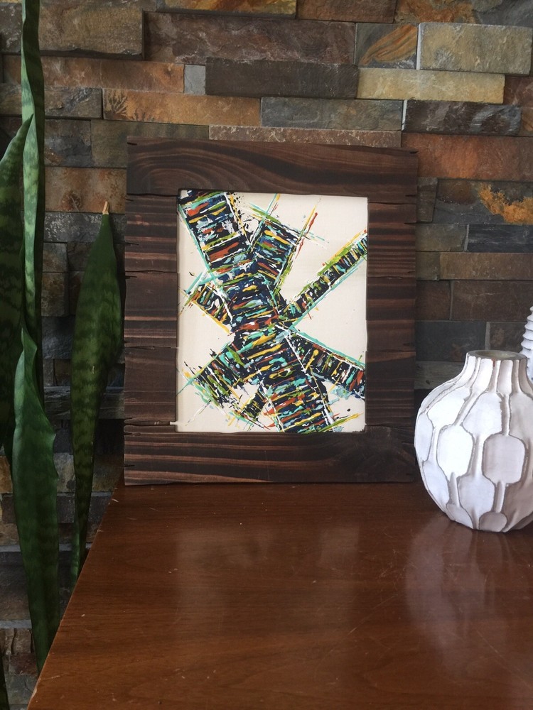 >>>Perfect for your Mid Century Modern Home>>> Original Acrylic Painting Titled- “ Make The Climb ” Original painting with upcycled free frame included - size with frame is 12” x 1 3.5” please note frames are not perfect, but complement the mcm designs. Wonderful MCM abstract design, vibrant layers of color Please ask questions prior to bidding ---- ( any accessories in picture not included ) Will ship within Continental US only ABOUT Me: I paint my passion. I grew up in a paneled ranch house with orange shag rugs and a mod cone fireplace in the den where we all watched the Brady Bunch ... ohhh that floating staircase! My work blends my obsession of anything mid century modern, with my love for using different materials, rich colors and textures, while mixing old with new. Early training on the East Coast supplemented by many trips to California have influenced my style. I am also a Frank Lloyd Wright devotee. A recent excursion to Sarasota has inspired my latest creations. All work is original, never to be duplicated. You deserve unique, one of a kind abstract masterpieces that will be the centerpiece of any room. I want you to smile and be moved every time you look at my art. Please check feedback - 100% satisfied customers.