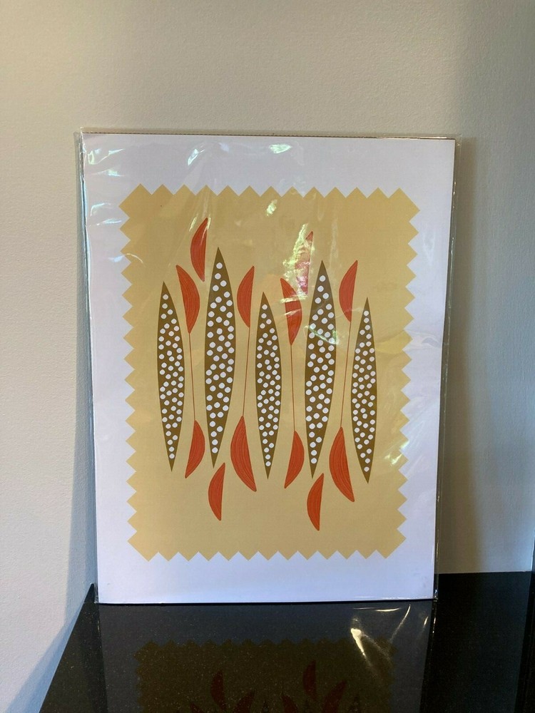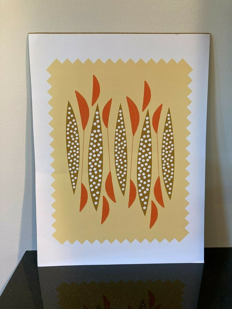 Mid Century Modern Art Print Yellow/Orange/Brown 12 x 16 in. Print has small crease on one side....