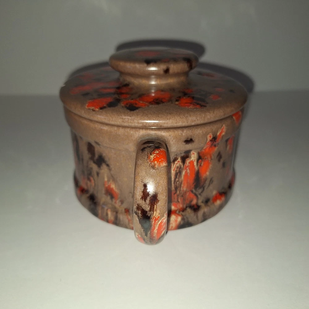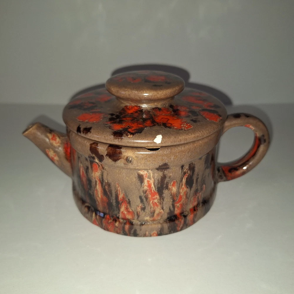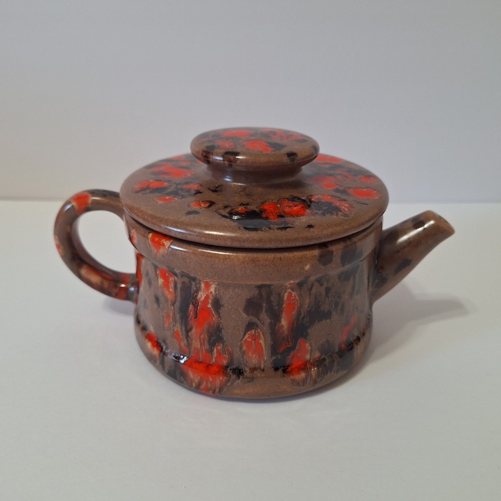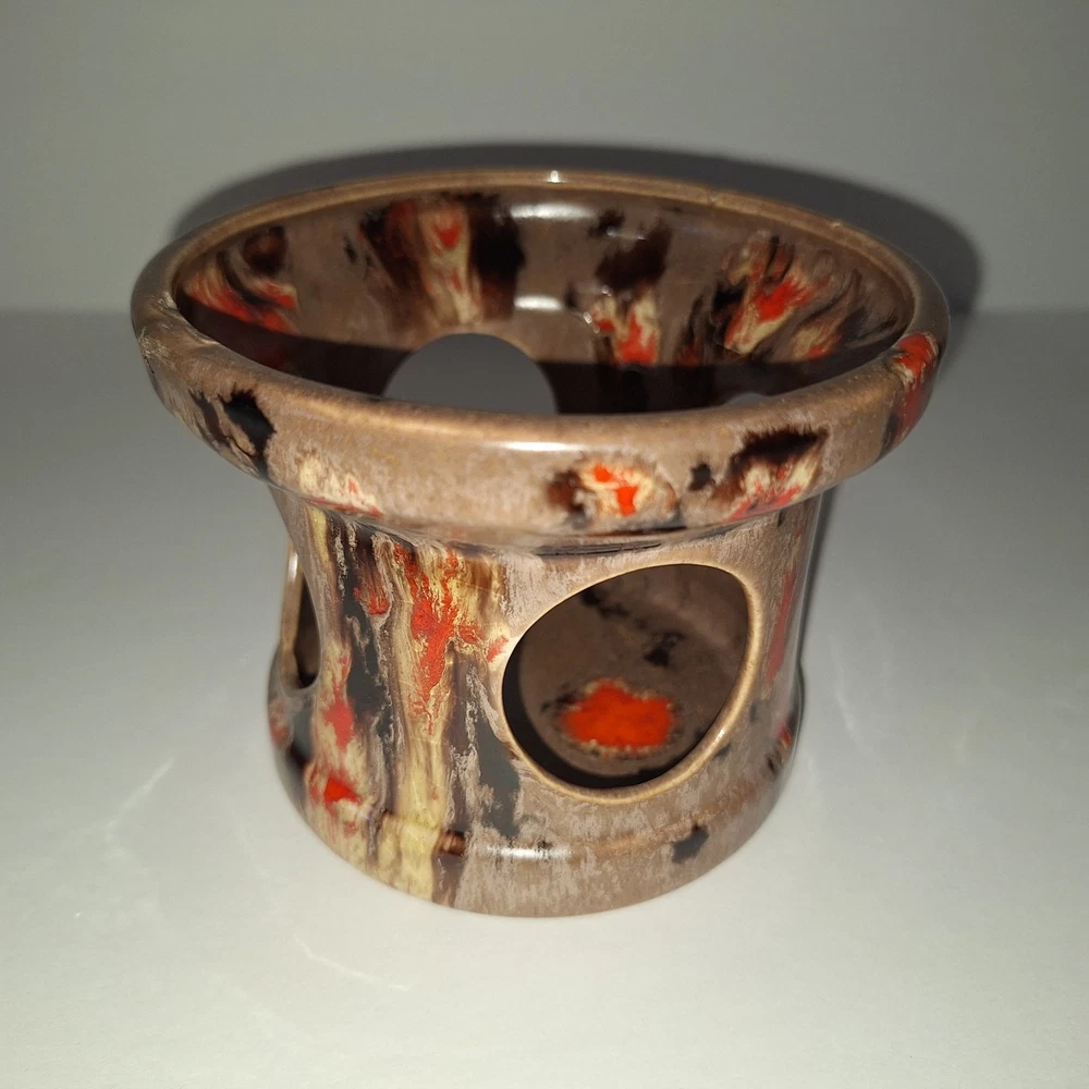 This Mid Century Modern "Artist Pottery" 3-Piece Tea Set includes a round 🫖 tea pot with lid and a🕯 candle warmer. The set is glazed in a matte chocolate brown and speckled with a glossy, vibrant orange drip glaze popular in the 1960s. The tea pot measures 7 inches in length, 4 inches in width, and 2.5 inches in depth, while the warmer is 3.25 inches high. This original art pottery set is a unique addition to any vintage MCM collection. This item is in Very Good "pre-owned" condition for its age and prior use. The colors are still vivid and bright. There are no cracks or repairs. There is one chip in the lid and corresponding rim of the tea pot. (Tealight candle not included, for display only) Please see all photos 📸. This item comes from a smoke-free home. I have described it as accurately as possible. Please see all photos and ask questions before bidding or purchasing. Colors displayed can be affected by monitor settings, so I do my best to ensure that the color is presented accurately. It is shipped by USPS Ground Advantage or the most economical USPS shipping option. 🧩🧩 Please check out my other items at Kdhaz6400f8o. Thank you for looking!! 😊