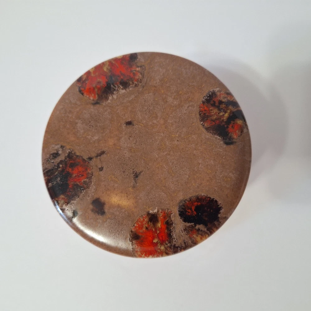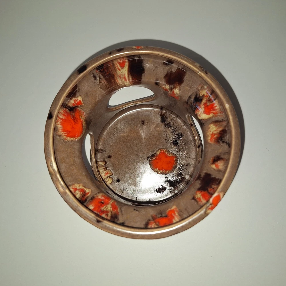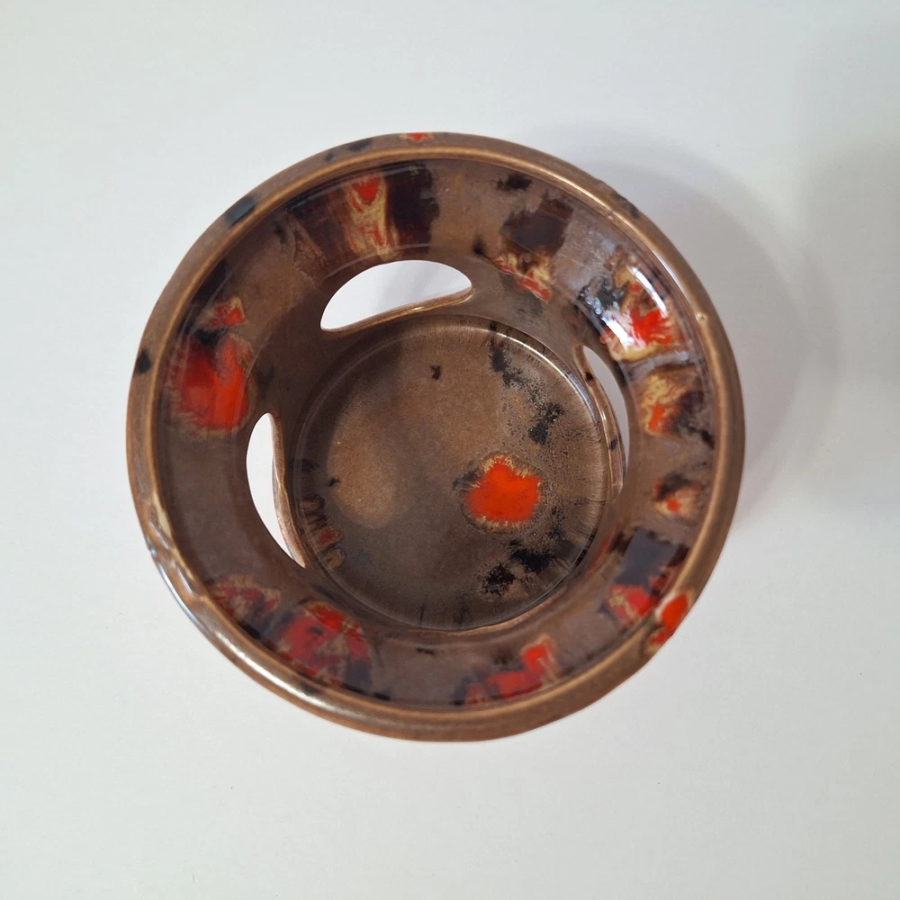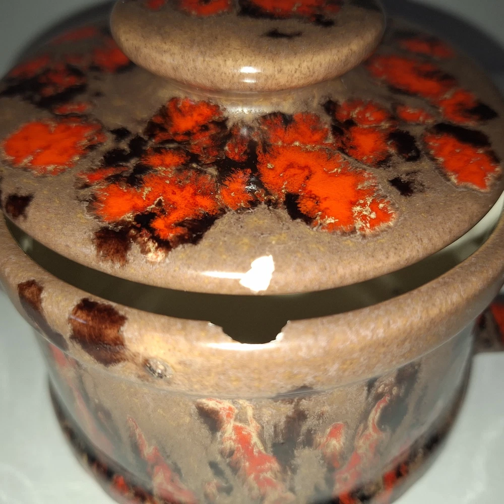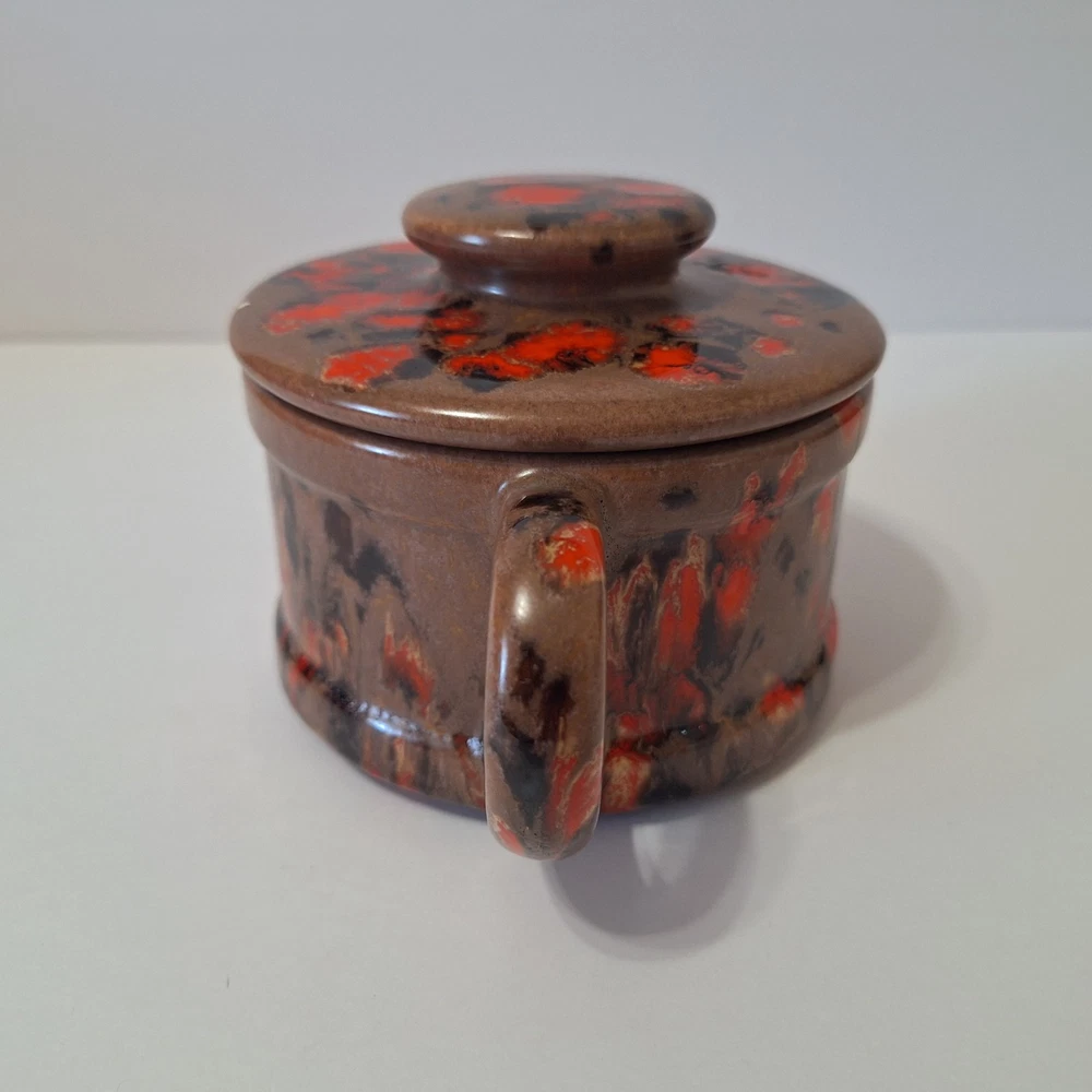This Mid Century Modern "Artist Pottery" 3-Piece Tea Set includes a round 🫖 tea pot with lid and a🕯 candle warmer. The set is glazed in a matte chocolate brown and speckled with a glossy, vibrant orange drip glaze popular in the 1960s. The tea pot measures 7 inches in length, 4 inches in width, and 2.5 inches in depth, while the warmer is 3.25 inches high. This original art pottery set is a unique addition to any vintage MCM collection. This item is in Very Good "pre-owned" condition for its age and prior use. The colors are still vivid and bright. There are no cracks or repairs. There is one chip in the lid and corresponding rim of the tea pot. (Tealight candle not included, for display only) Please see all photos 📸. This item comes from a smoke-free home. I have described it as accurately as possible. Please see all photos and ask questions before bidding or purchasing. Colors displayed can be affected by monitor settings, so I do my best to ensure that the color is presented accurately. It is shipped by USPS Ground Advantage or the most economical USPS shipping option. 🧩🧩 Please check out my other items at Kdhaz6400f8o. Thank you for looking!! 😊