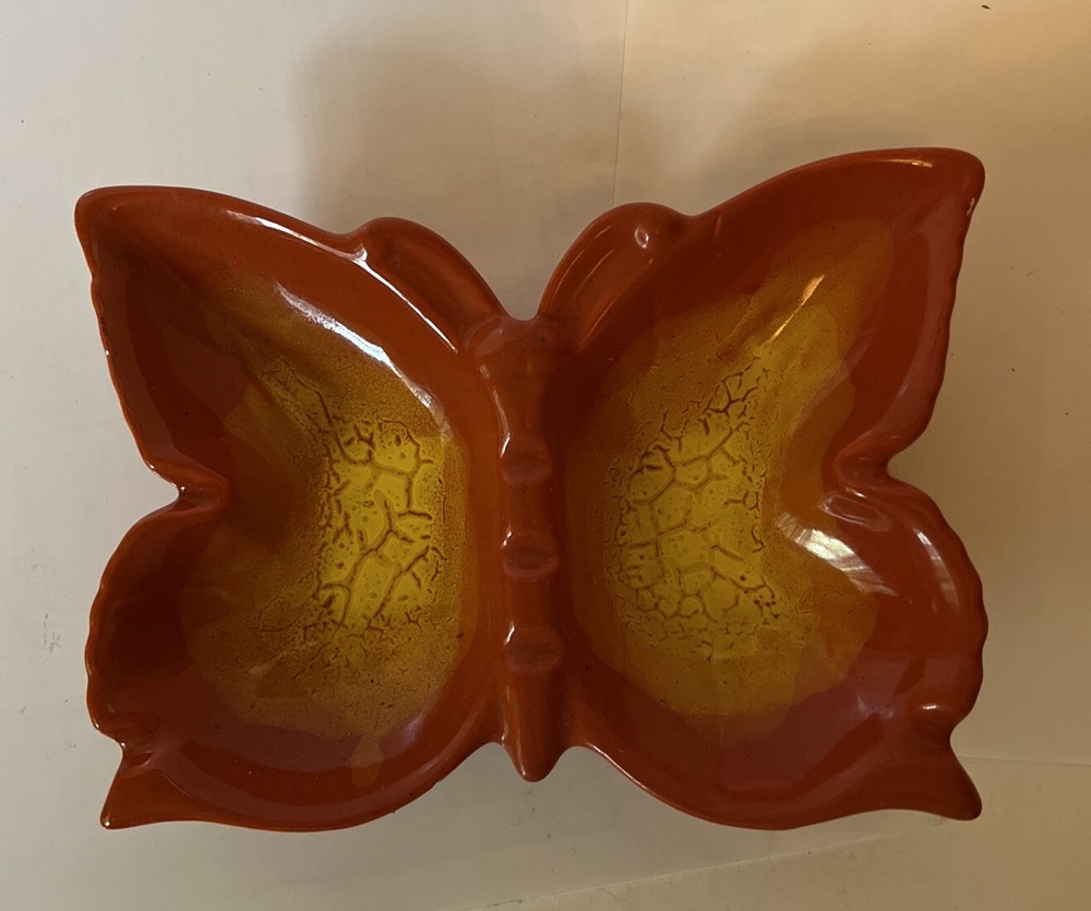Very pretty MCM vintage Butterfly Ashtray. Approx 7” x 5.5” orange & yellow. Small chip on bottom. Please see pictures...