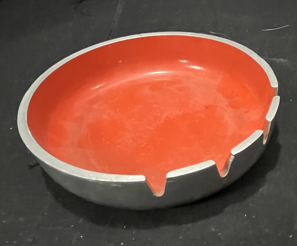 Mid Century Modern Ceramic Orange Silver Ashtray Collectible Pop Art Home Decor . Condition is Used. Shipped with USPS First Class.