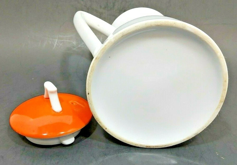 Mid Century Modern Ceramic Serving Teapot White with Orange Lid Unmarked About 7" Tall 370a...