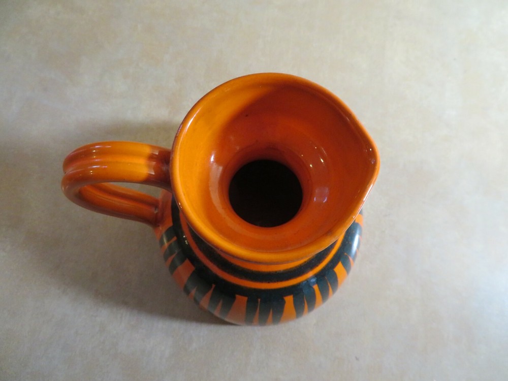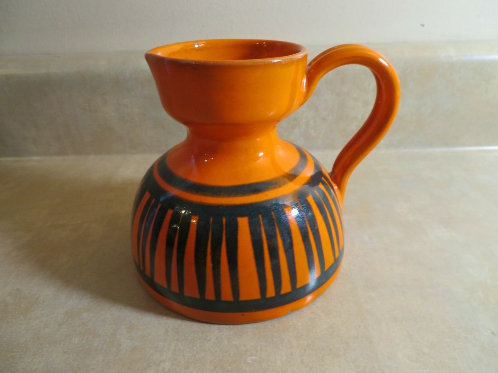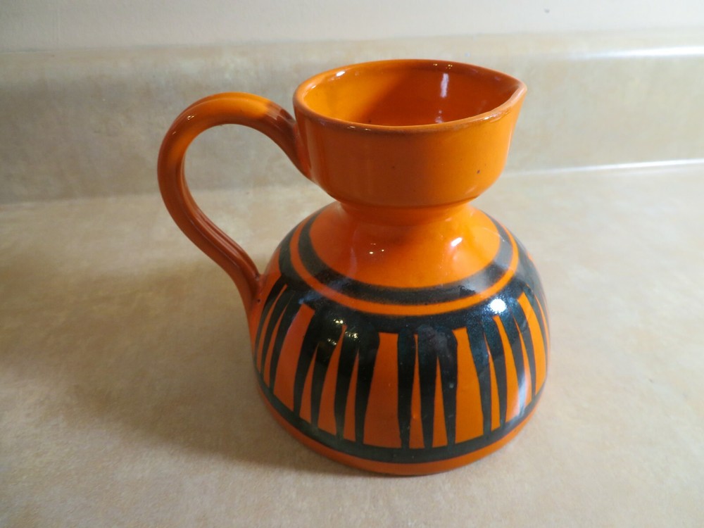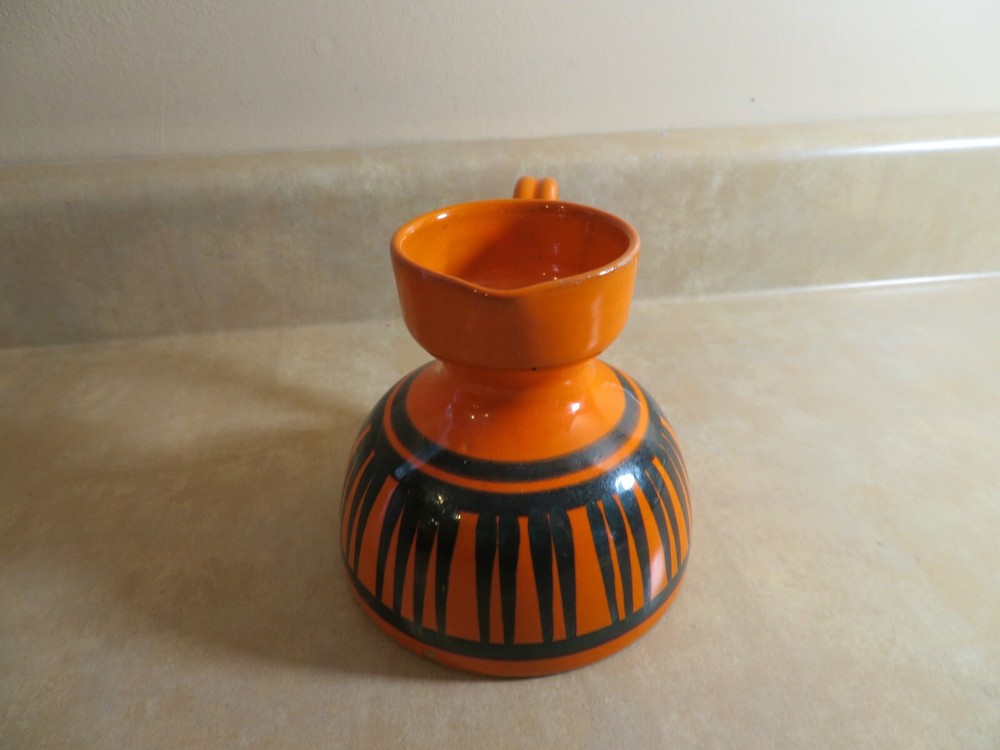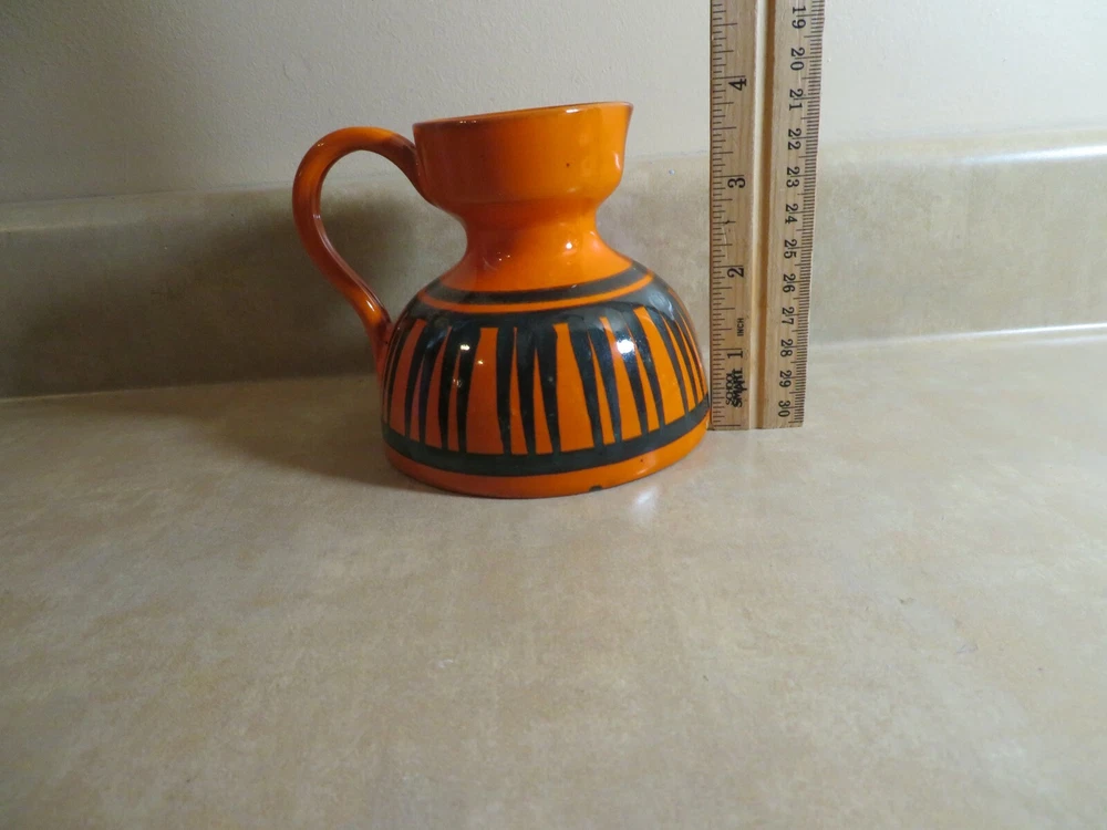 Very cute pitcher or creamer, small vase. Good vintage condition. About 4 inches tall . Some small areas with missing glaze on the bottom to the side ( not a damage just how it was made) Marking on the bottom Italy 3030 / 7 ( that is how I come up with, the 0 may not be correct)