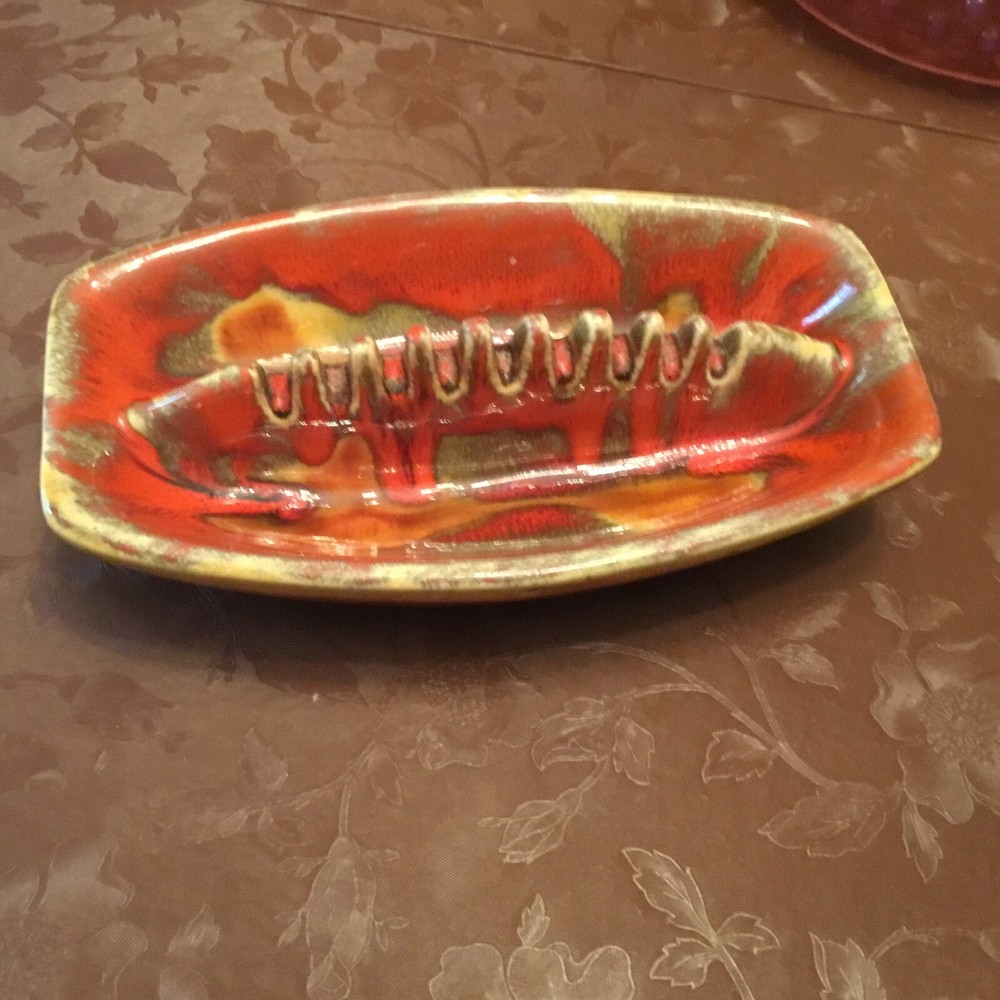 Mid Century Modern Modern Ashtray Fat lava A very groovy piece! Condition is Used. It has an original foil label. I can’t read it. Print long gone. Oranges and greens. Nice condition related to age. No repairs. 10 inches long by 6 inches wide by 4 high. Use zoom feature on photos to see details of the piece Photos are an important part of the description of the piece Terms of sale Free shipping in Canada only Shipping is by Canada Post regular parcel delivery service tracked We ship to USA Other international buyers please email me for shipping quote before you purchase please International buyers responsible for shipping cost and all duties and tariffs associated with international sales Thanks for looking and make sure to check out our other items in our eBay store Reasonable offers considered