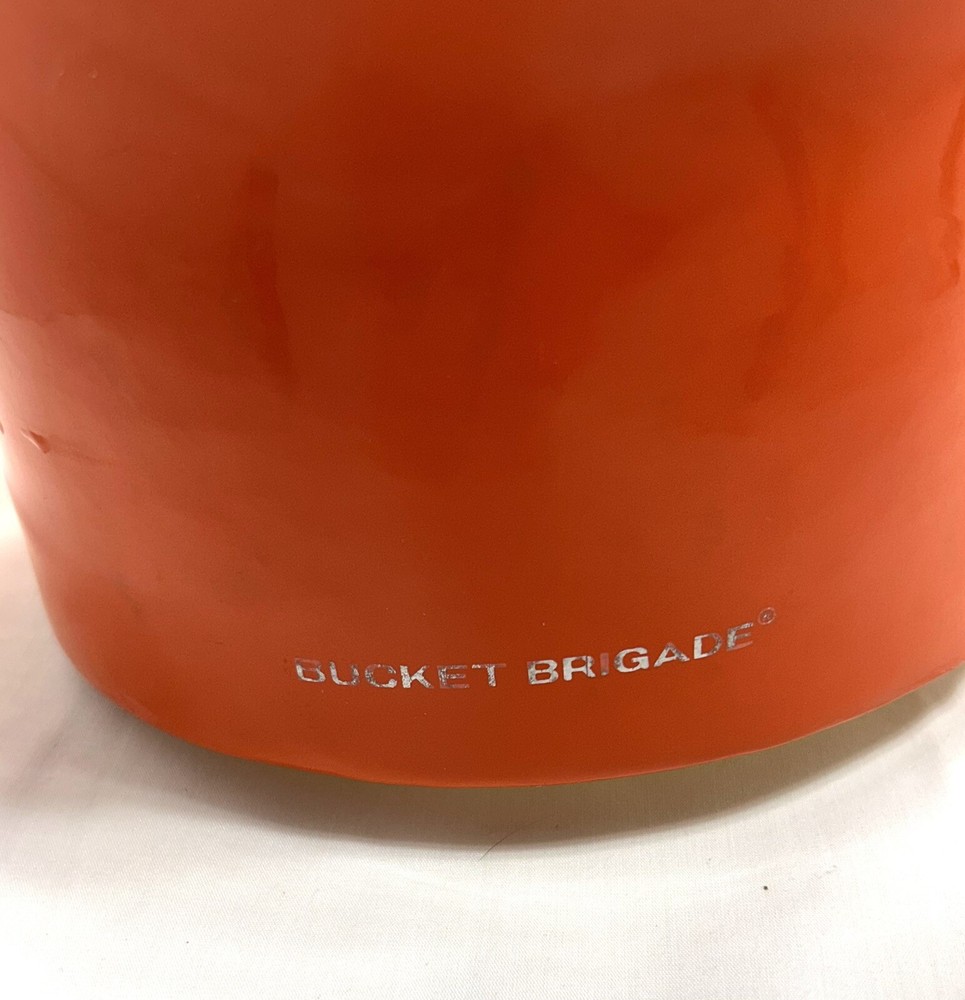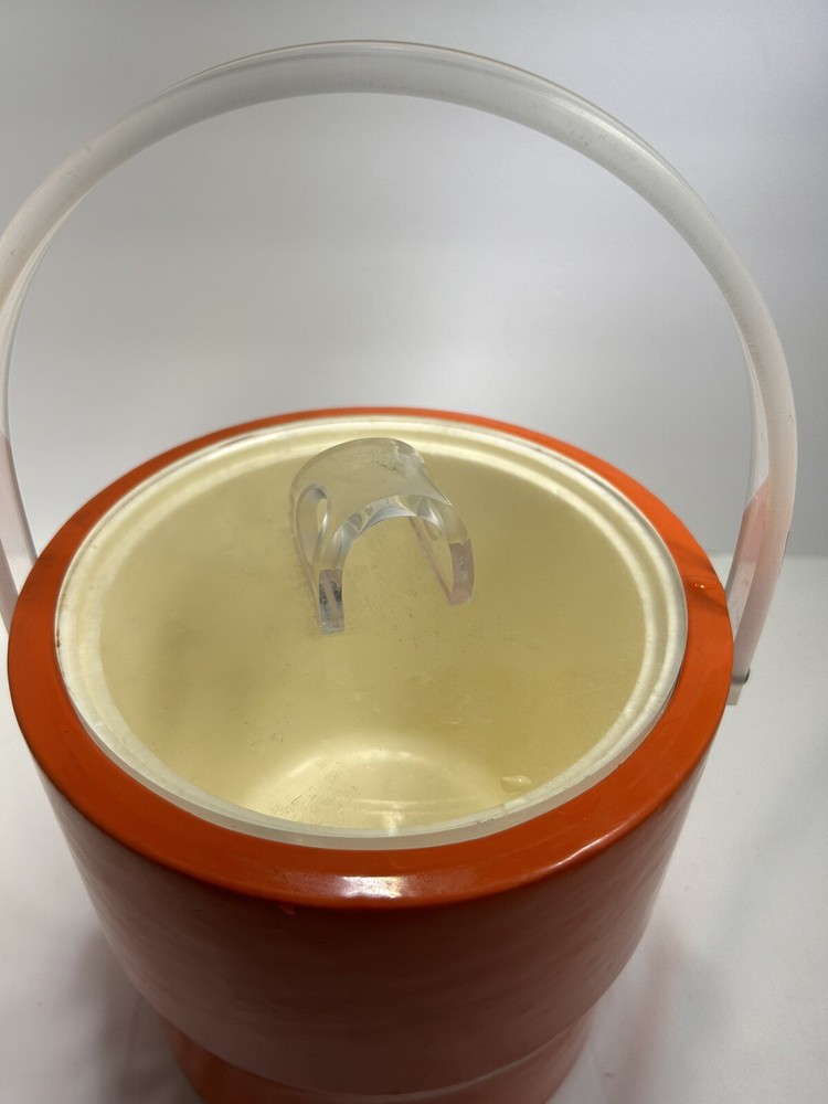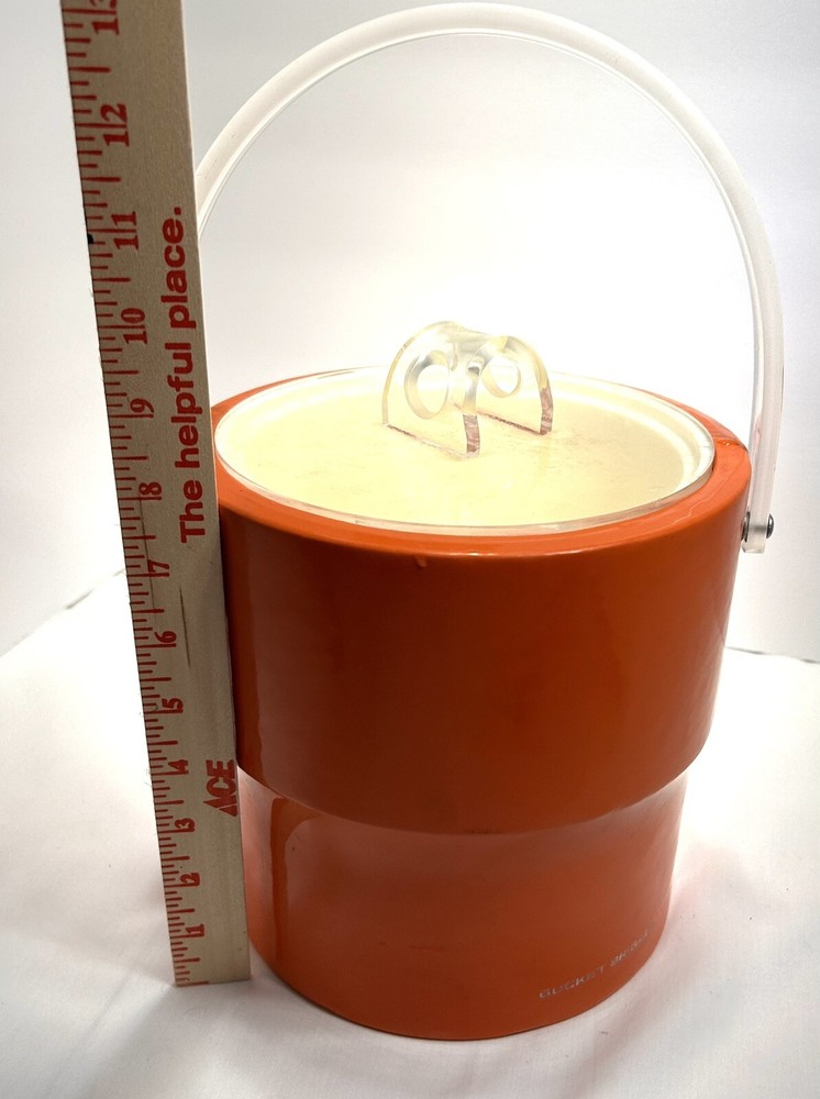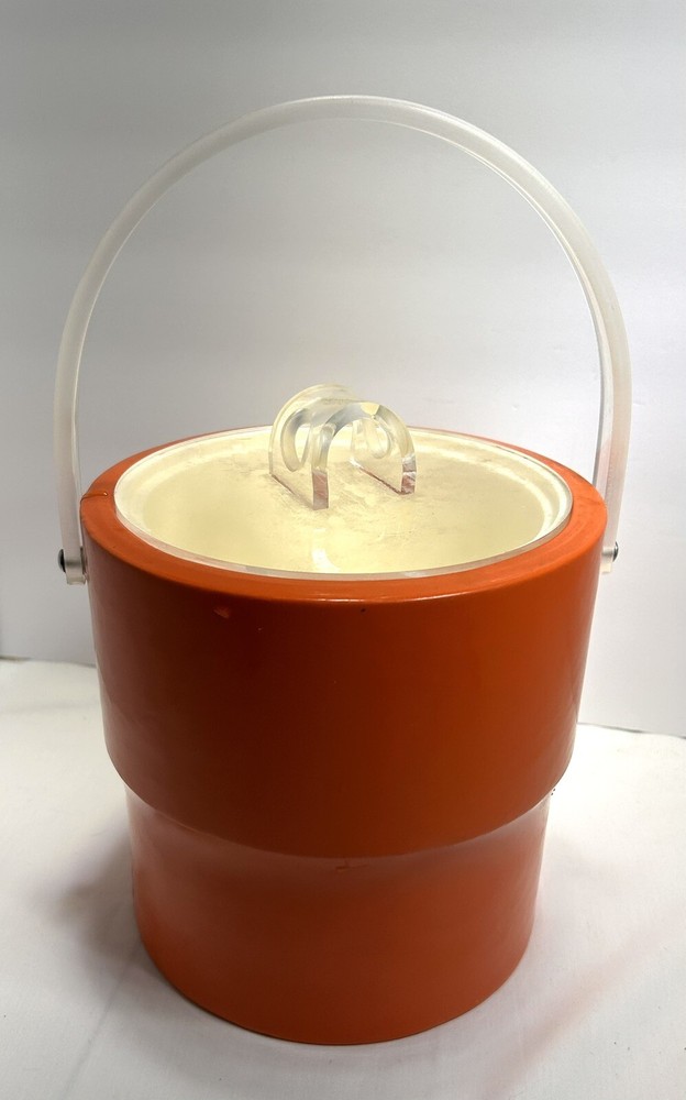 This vibrant orange ice bucket from Morgan Designs is the perfect addition to any home bar. Crafted from durable plastic, it features a sleek and modern design that is sure to impress your guests. The lucite ice cube top adds a touch of elegance, while the sturdy handle makes it easy to transport from the kitchen to the bar. Ideal for entertaining, this mid-century modern ice bucket is the perfect size for holding a bottle of your favorite beverage and plenty of ice. Its bright orange color and unique design make it a standout piece that is sure to be a conversation starter. So whether you’re hosting a cocktail party or simply enjoying a quiet night at home, this Morgan Designs ice bucket is a must-have accessory.
