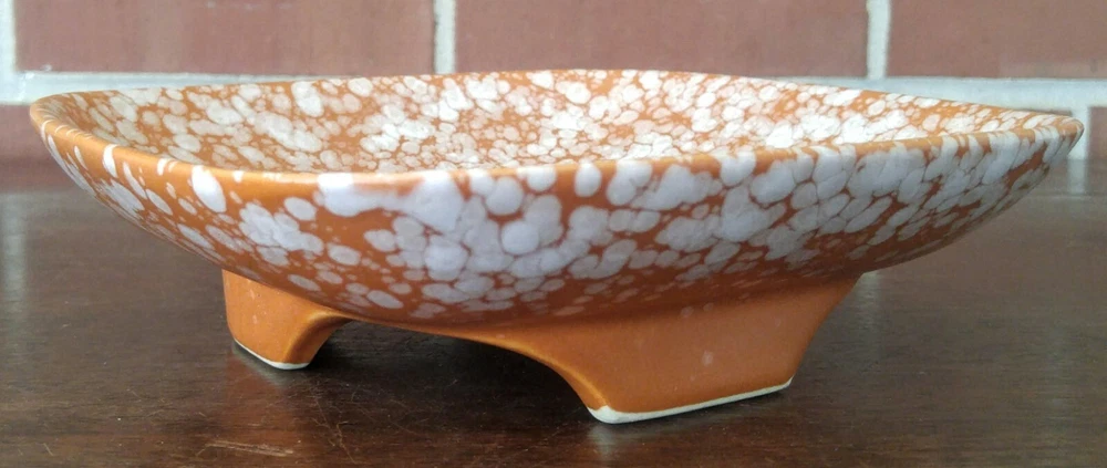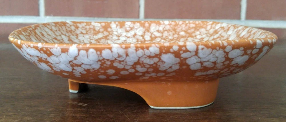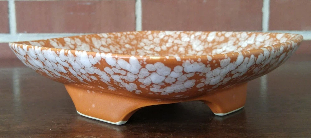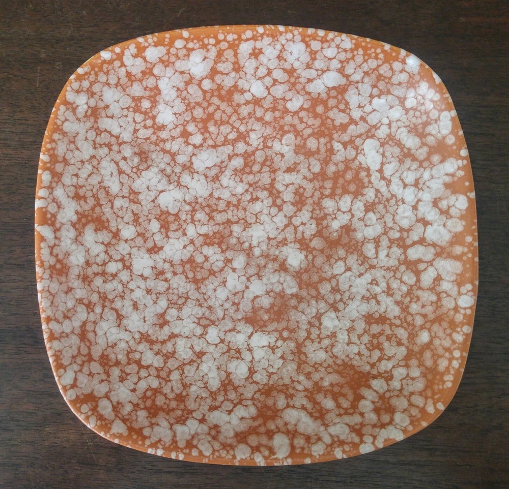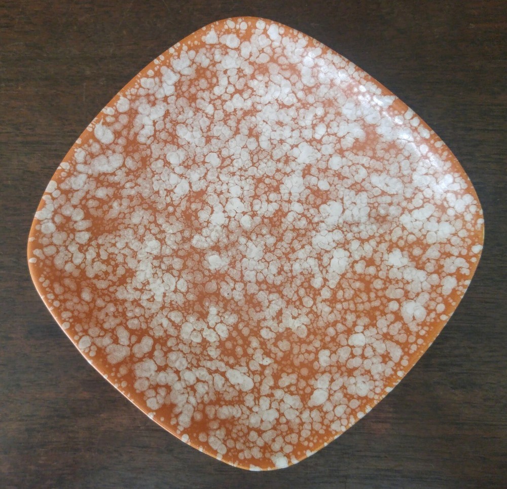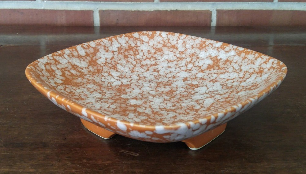 Mid Century Modern Napcoware Japan Footed Dish Plate Orange White Speckled Great piece. Measures about 7 3/4 inches across sides, stands about 2 inches tall. Please see the pictures! LI1906...