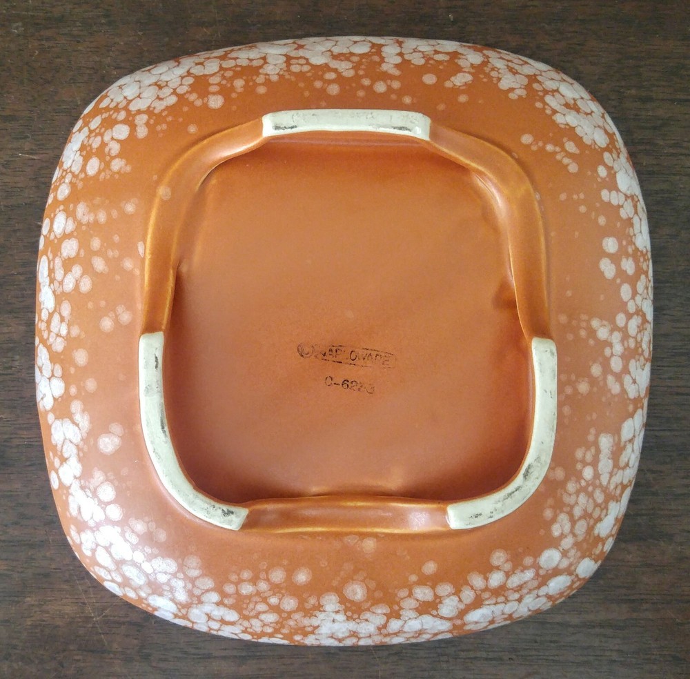 Mid Century Modern Napcoware Japan Footed Dish Plate Orange White Speckled Great piece. Measures about 7 3/4 inches across sides, stands about 2 inches tall. Please see the pictures! LI1906