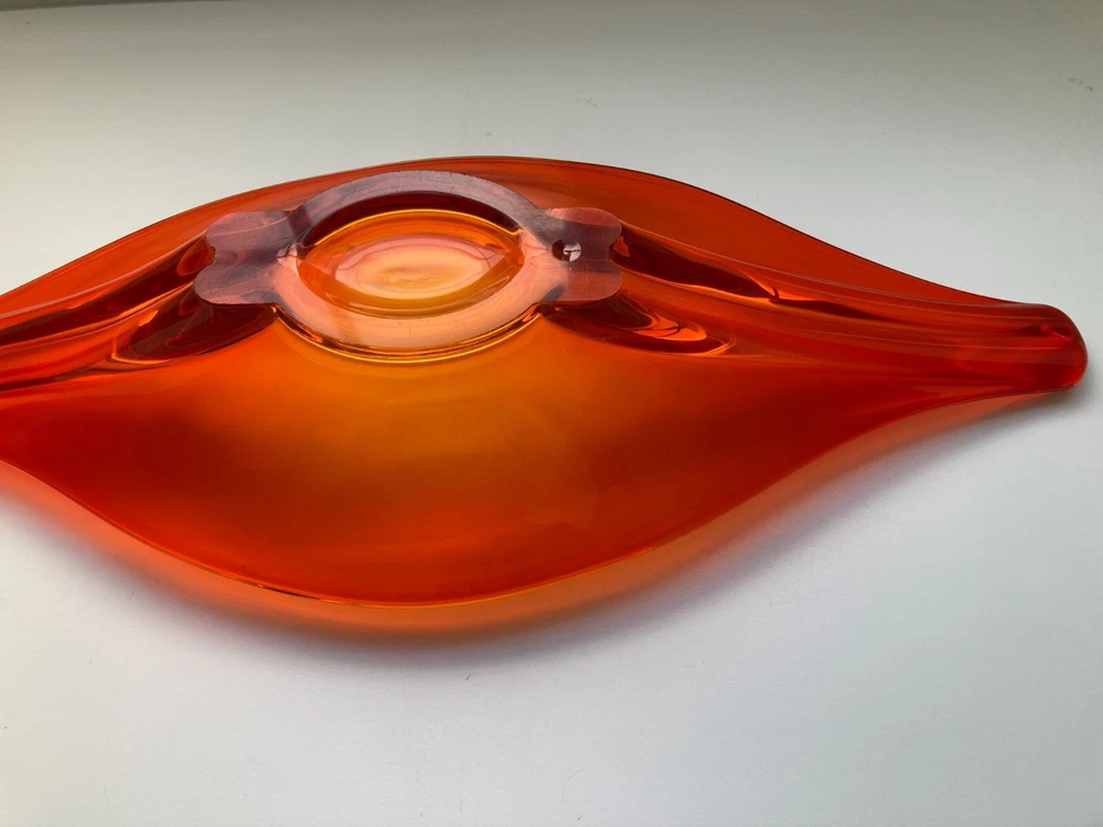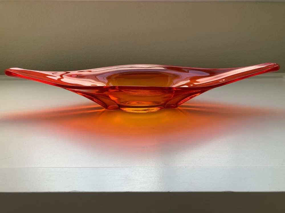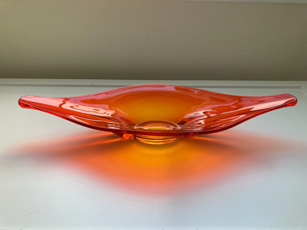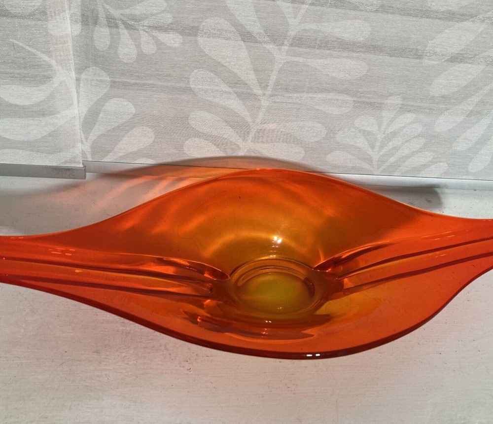 Orange Glass console Bowl Mid Century Modern Beautiful Centerpiece Great Condition No chips or cracks 20” x 8” x 3”