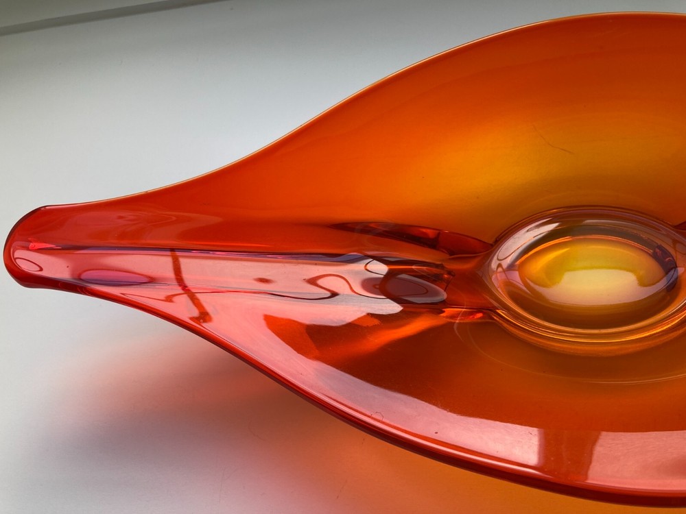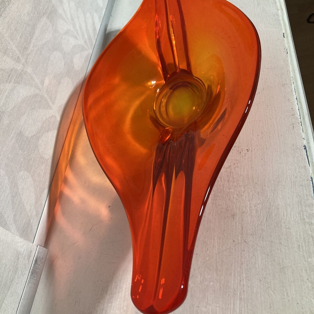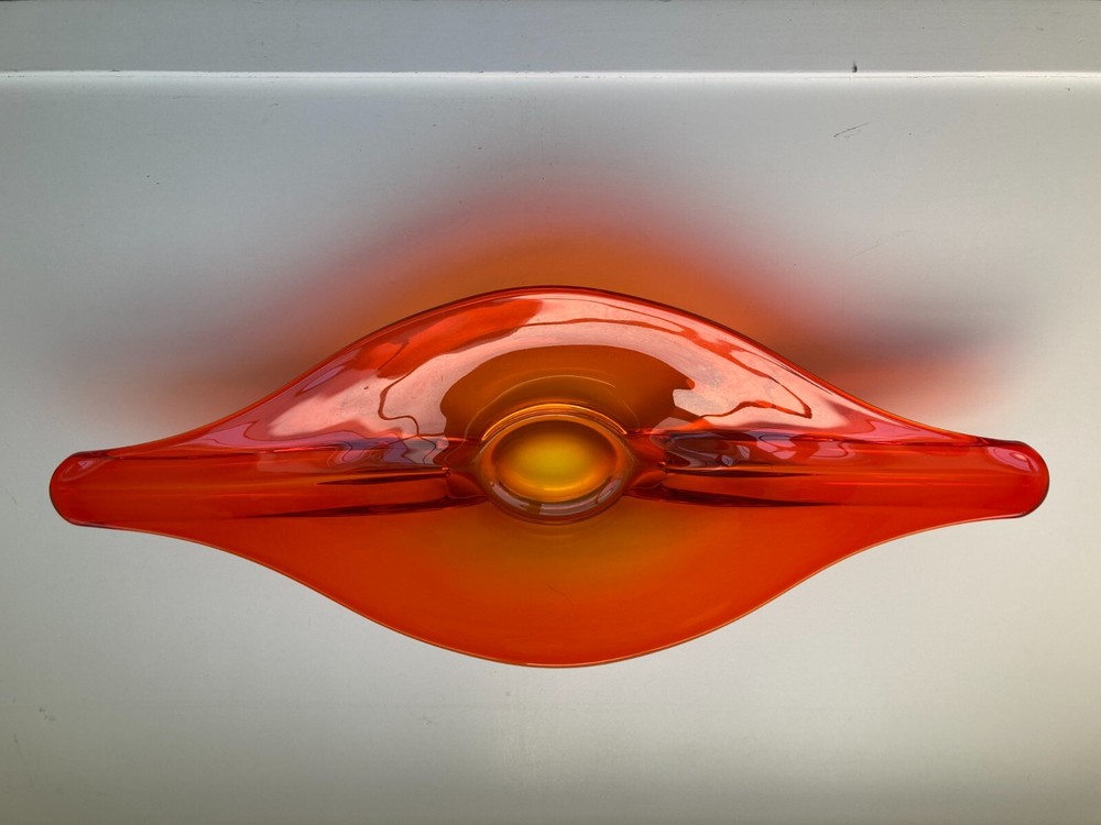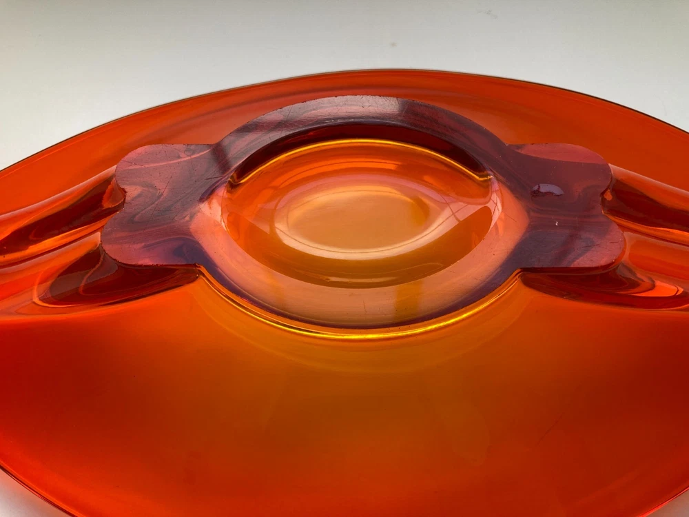 Orange Glass console Bowl Mid Century Modern Beautiful Centerpiece Great Condition No chips or cracks 20” x 8” x 3”