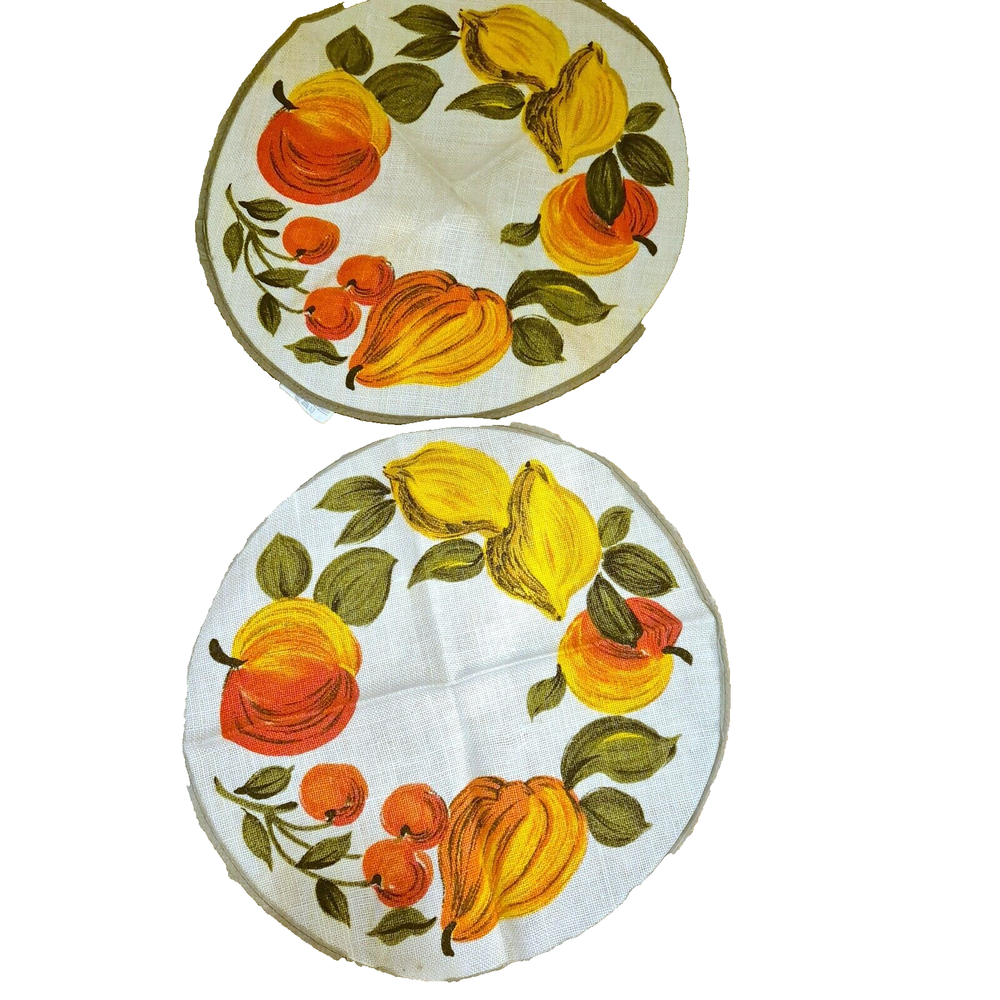 Mid Century Modern Pair Of Round Doilies Fruit Orange 1960s Jute MCM 38cm German PLEASE READ CAREFULLY BEFORE PURCHASING- All items are sold "as is" so it is imperative that you study the photos closely, read the descriptions and ask any questions you might have. Please email any questions you have about condition of my items prior to purchasing. Please remember these are vintage items, and as such will not be in perfect "like new" condition. I have other items for sale. If you would like to make more than one purchase, please message me for combined postage. Please note, if packaging quote exceeds actual cost, I will refund the difference to you.