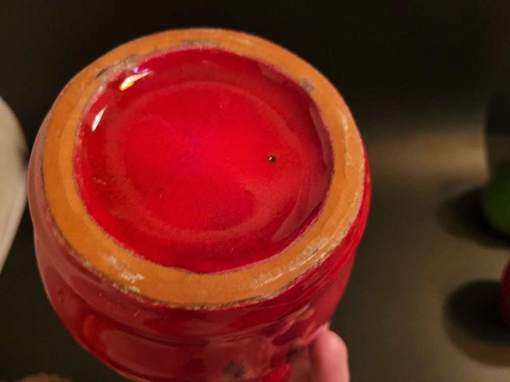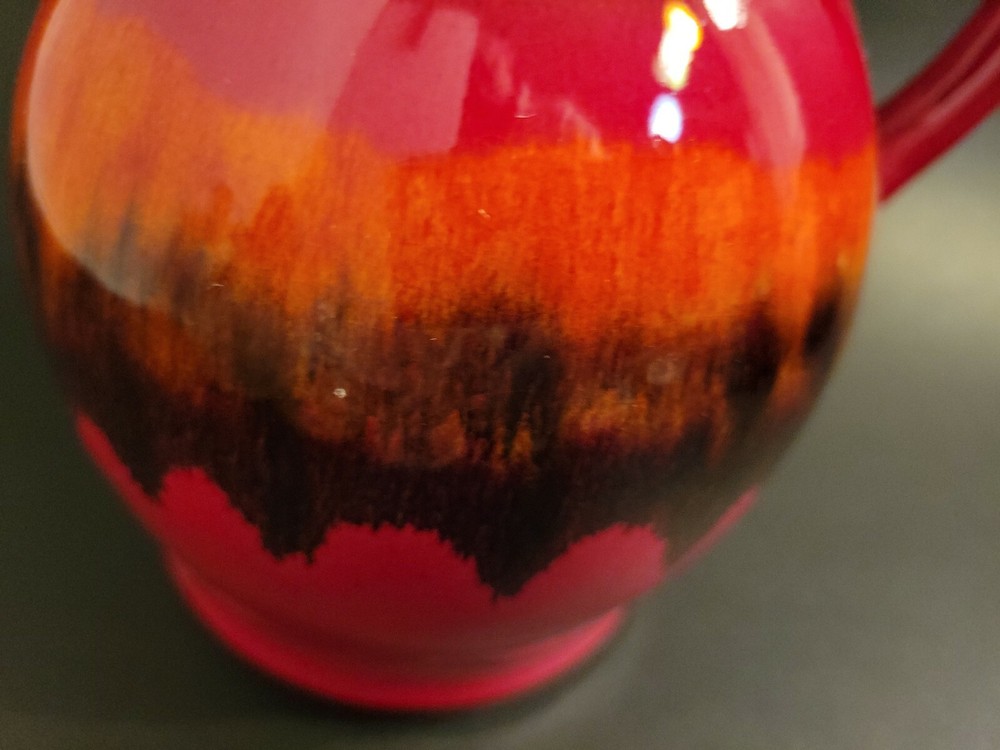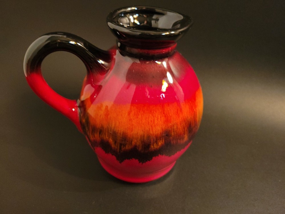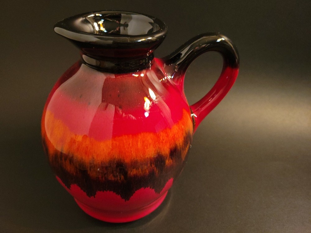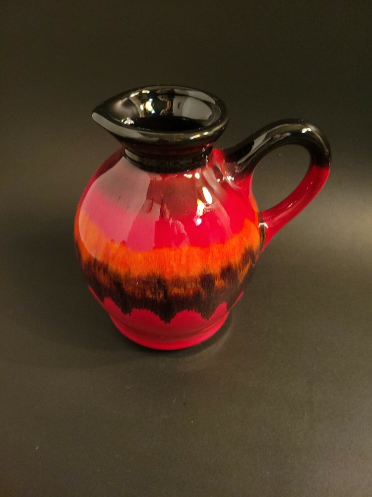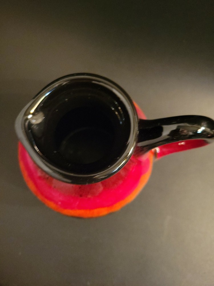 Mid Century Modern Pitcher, Redware Pottery, Fat Lava Pitcher Orange Boho....