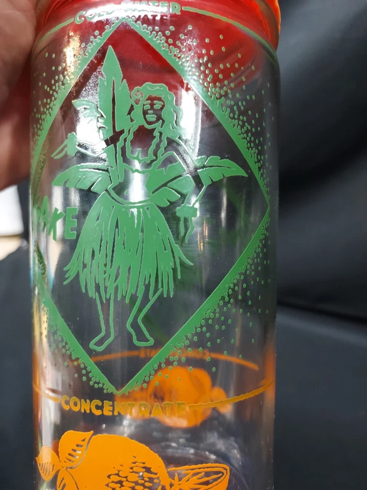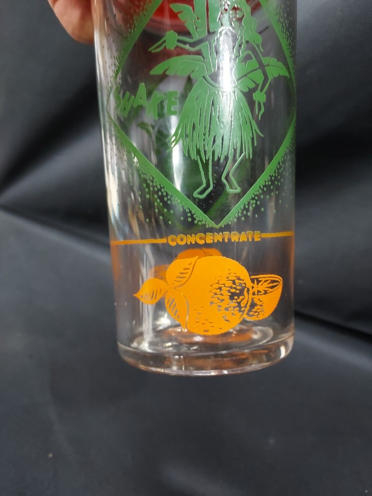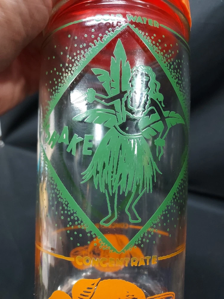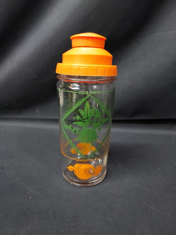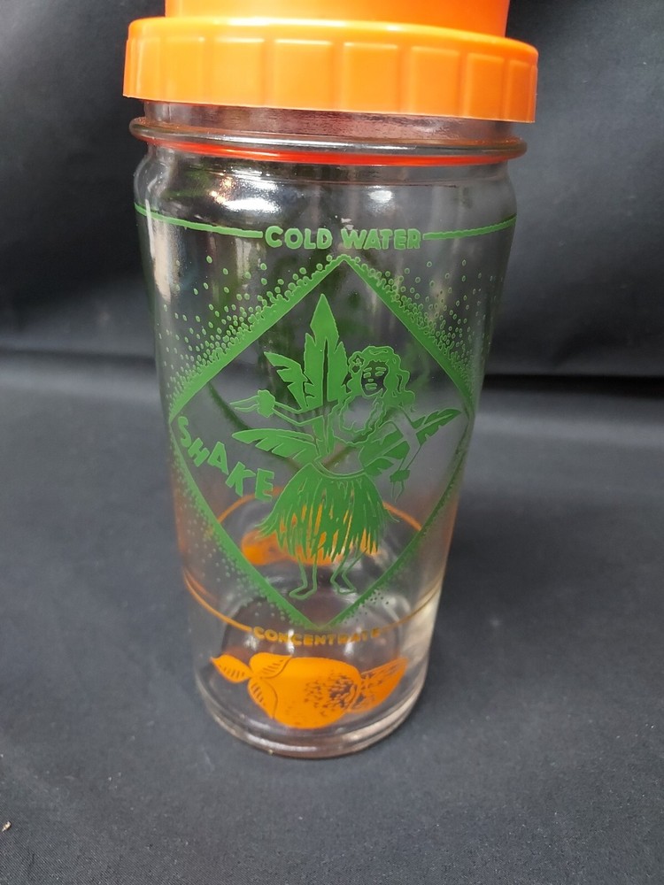 Mid Century ORANGE JUICE CONCENTRATE CARAFE COCKTAIL SHAKER HULA DANCER TIKI. Condition is Used. Shipped with USPS Ground Advantage.