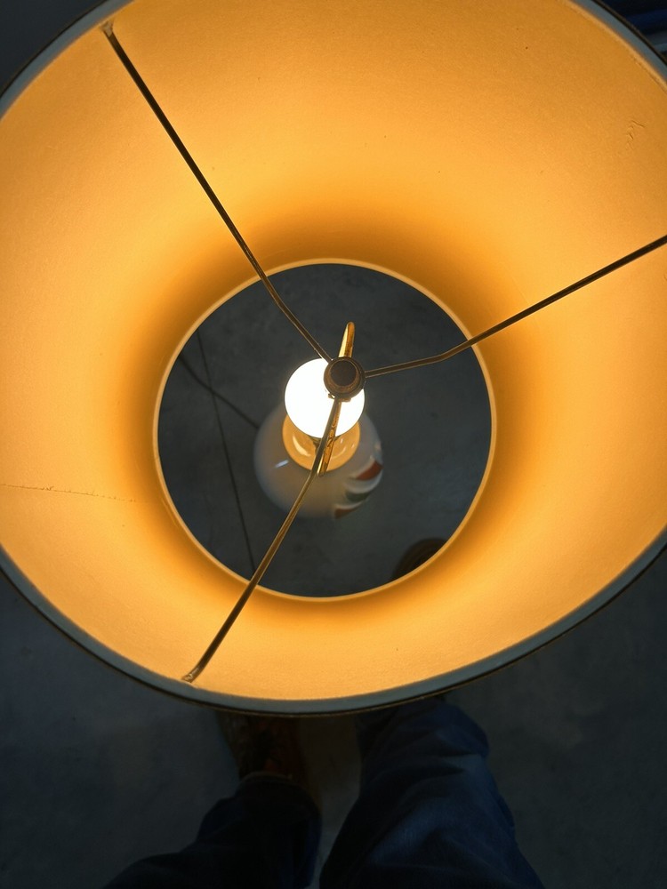 Nice lamp that works. Has some fading on the gold. Measurements are 32 in height and 9 in width, thank you for showing interest.