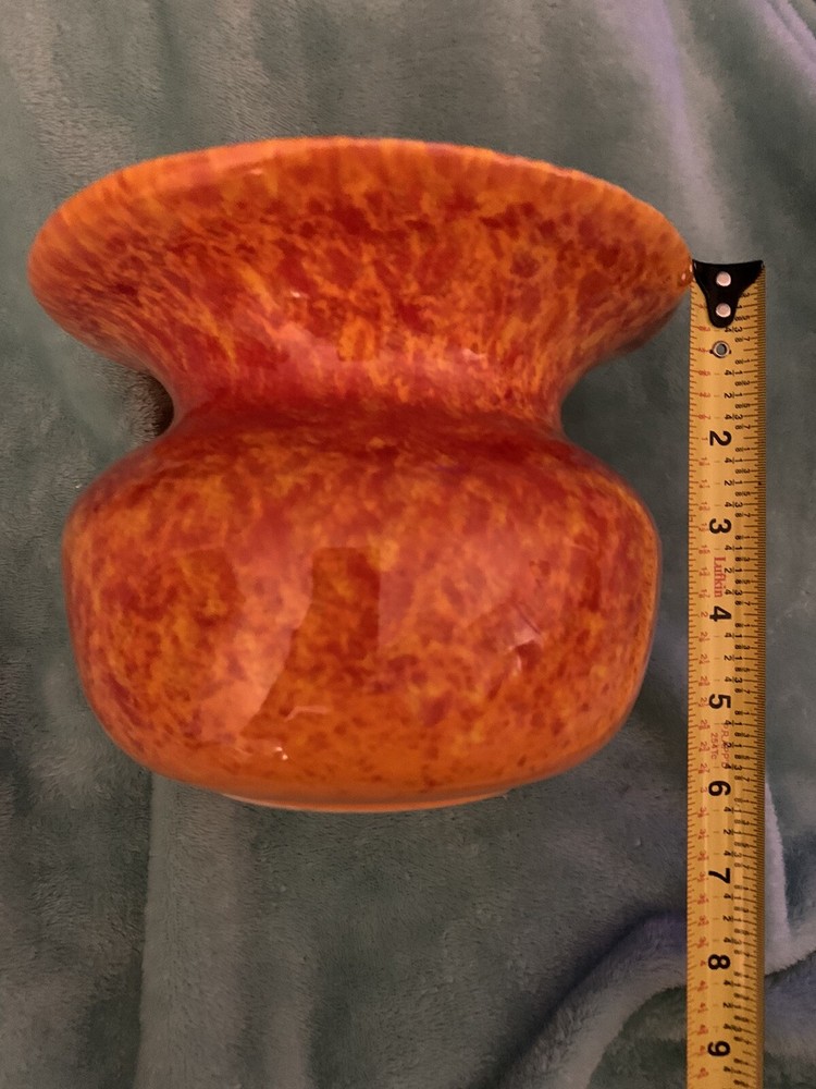 Mid Century Orange Drip Glaze USA Pottery Spittoon Shape Vase. Condition is "Used". Please see photos for evidence of wear from age and size measurements. Very nice piece....
