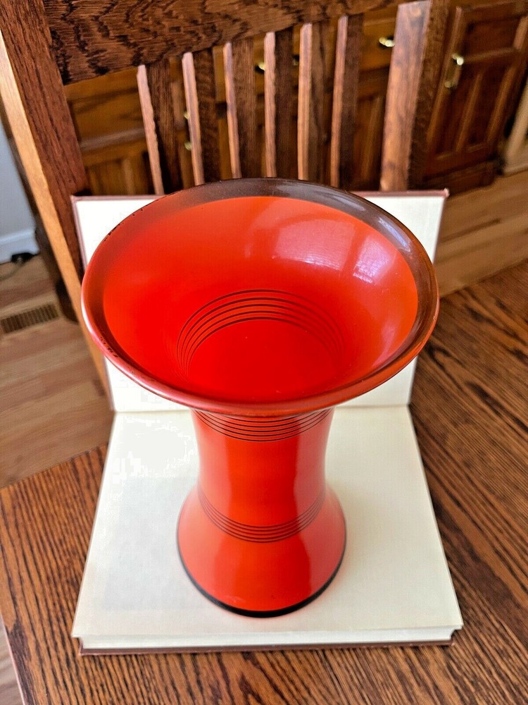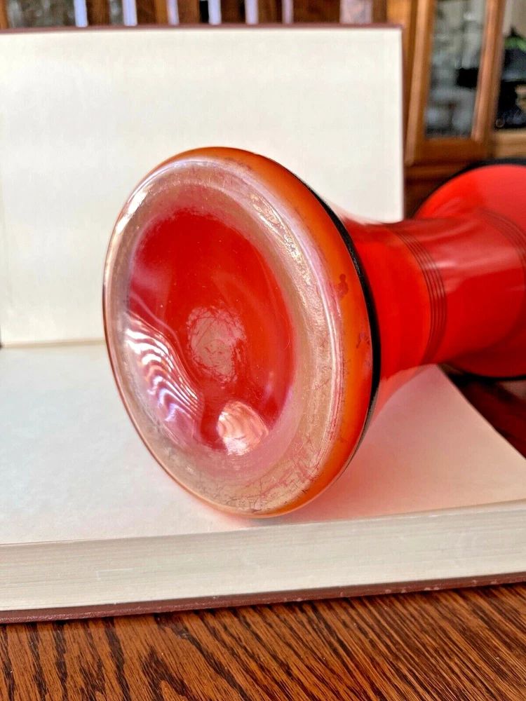MCM Original Painted Glass Vase This is from an estate of a collector of glass. Rare color and stunning. She began collecting in the mid 1950's. Stunning color in the light. This was used as a vase with flowers back in the day. Found wrapped in tissue in the attic. - The piece measures 10" inches tall x 5 1/2" inches round. - Clear painted glass. - Beautiful orange color. - There are no knicks, cracks or repairs. - Shipping price reflects Item will be packaged and shipped well. - Fantastic and Rare item to add to any collection. Thank you for visiting my Ebay Store. Feel free to e-mail me with any questions you may have. Please browse the store and check back often as new listings are added frequently. Thanks again for stopping by and have a great day!
