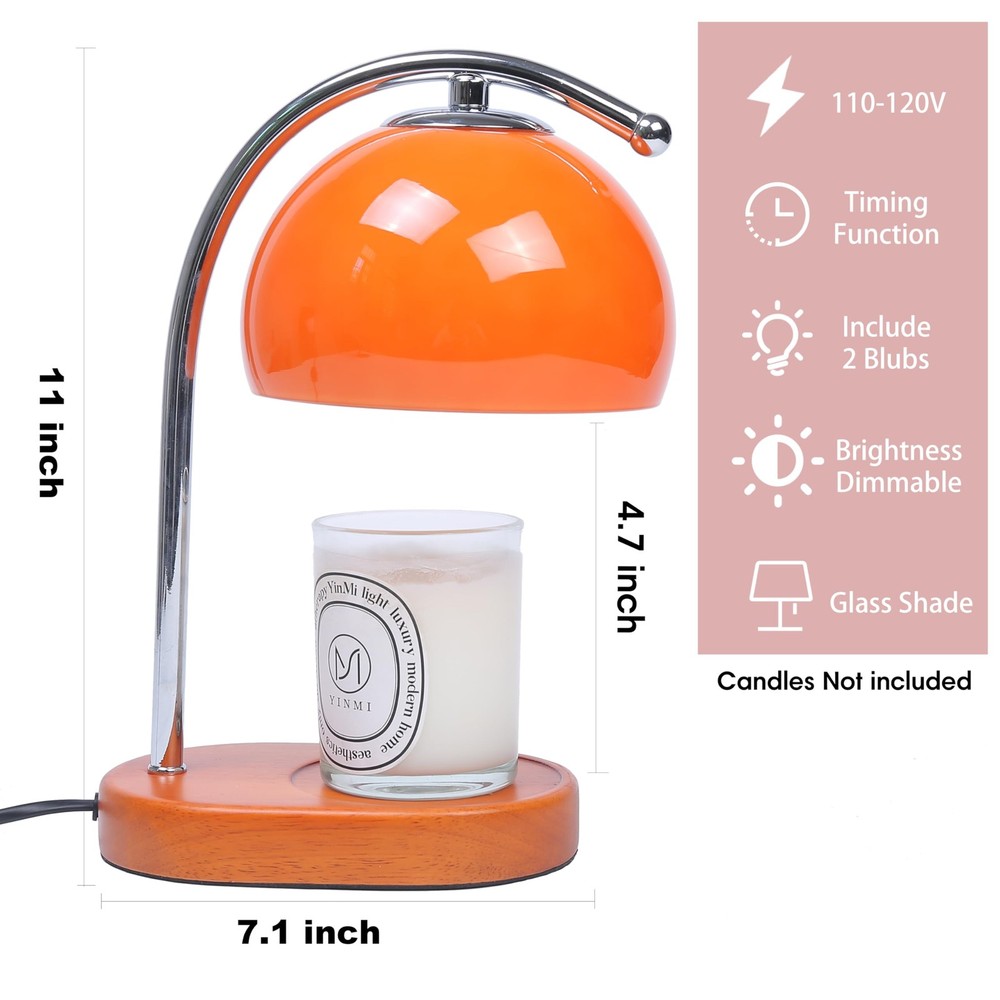 Absolutely love this retro-inspired candle warmer lamp! The warm orange glass shade and wooden base add such a cozy, mid-century charm to my space. The dimmer and timer features are so convenient—I can set the perfect ambiance without worrying about leaving it on. It melts candles evenly and looks gorgeous as both a warmer and a decorative lamp. A stylish and functional gift for any home!