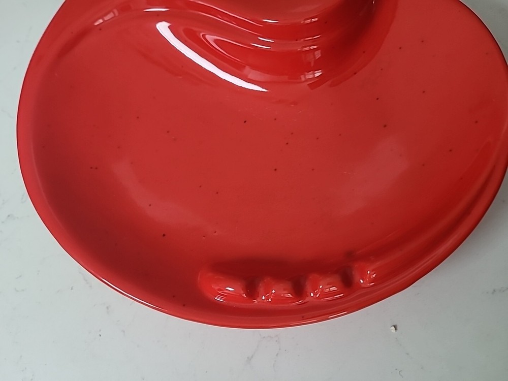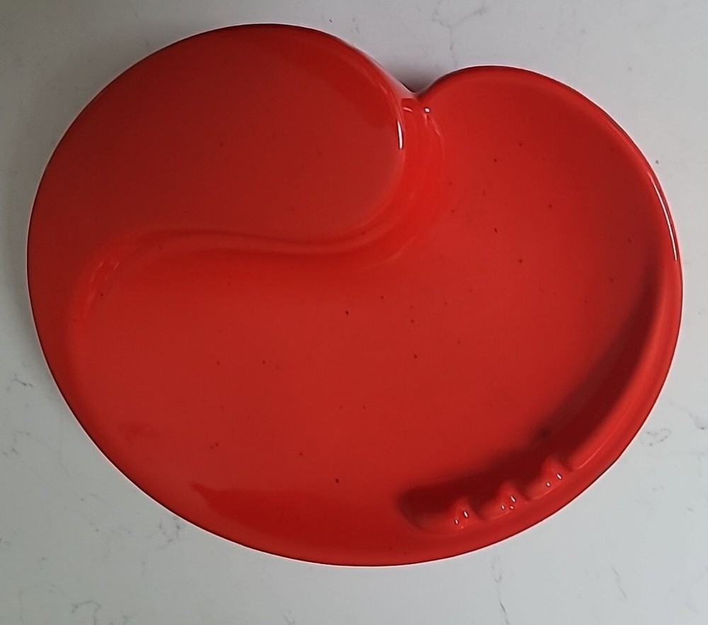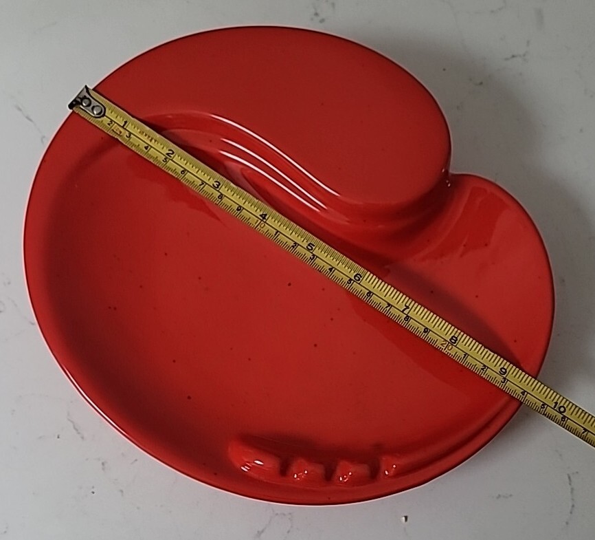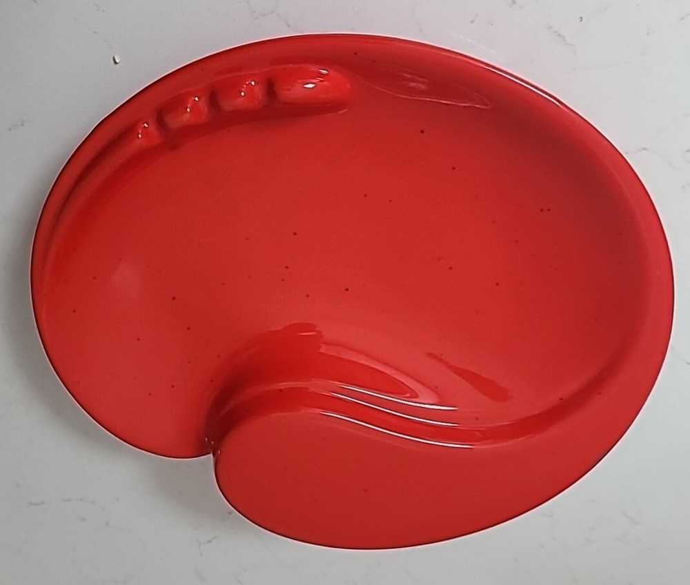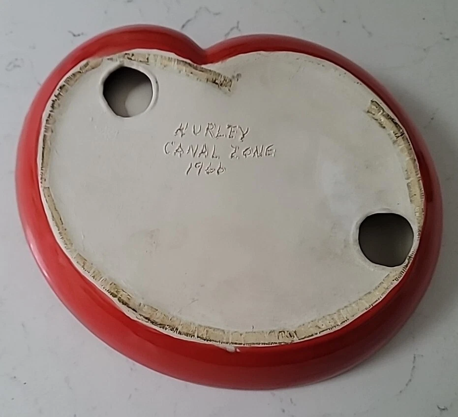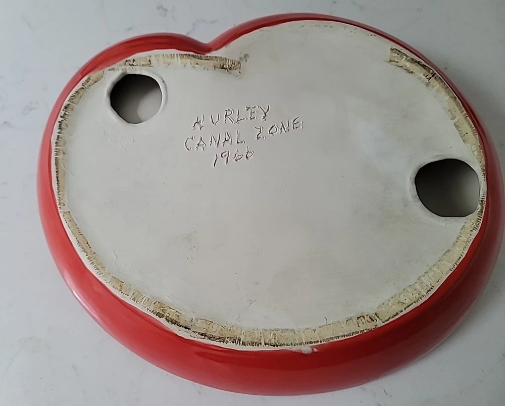 A beautiful large glossy orange ceramic mid century ashtray cigar tray to die for. See pics for condition details. There are darker areas in the bowl and some imperfections in the glaze that accent its vintage charm. There is also a faint dark line in the bowl. This was made in 1966 by Hurley Canal Zone, a gorgeous piece. Can be used for anything.