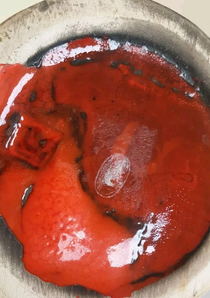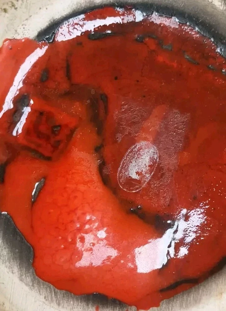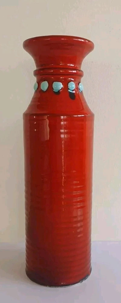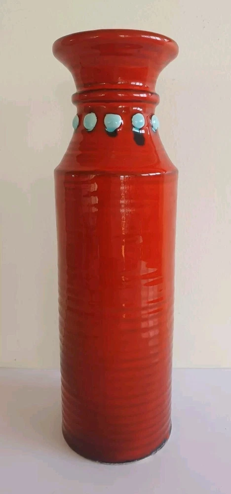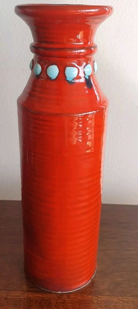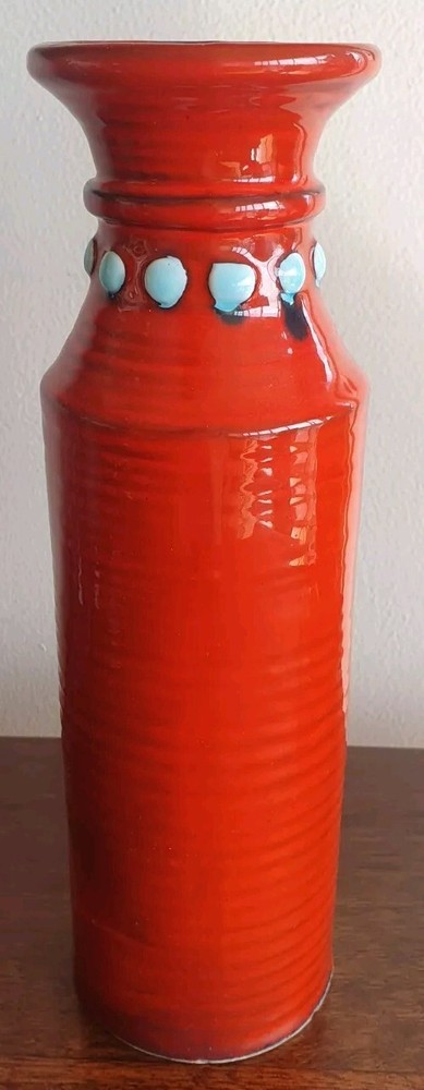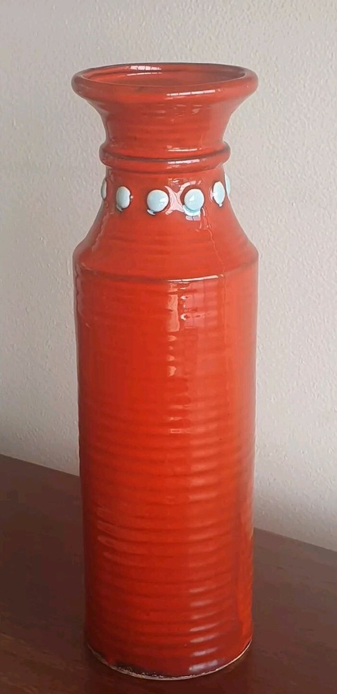 Mid Century Orange & Turquoise pottery / ceramic vase. It is 24.5cm tall. It is in good condition....