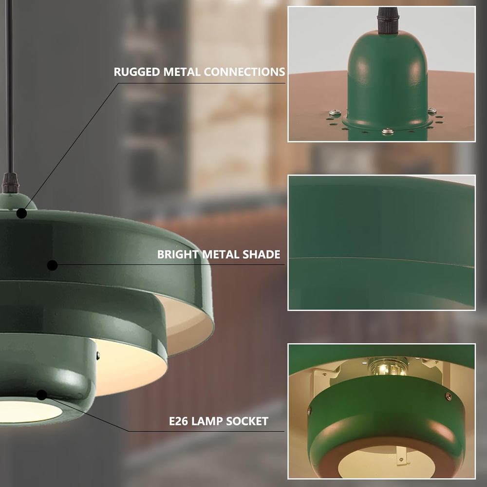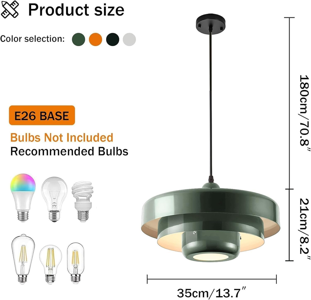 【Vintage Design】: The vintage ceiling pendant lights is made of metal iron lamp body. The surface of the metal shade is processed by advanced wire cutting process, and the 3-layer appearance design is more creative. The bright light reflects beautiful light effects through the lampshade. 【Dimension】: D13.5" * H8.2"/ 35* 21cm, ceiling canopy diameter 4.72”/ 12cm, adjustable cord length 59"/ 150cm. The mid century modern pendant lights can be used in Indoor lighting, such kitchen island over, hallway, restaurant, living room, bedroom, dining table and so on. 【Bulb Base】: Flush mount pendant light fixtures can compatible E26 Edison bulbs or incandescent or LED bulb. Fully adjustable color temperature when used with dimmable bulb (bulb not included); 【Easy to Install】: The package includes all mounting hardware and an English installation instructions for quick and easy installation. 【Please Purchase with Confidence】: ccook offers the best customer service. Feel free to contact us via email with any questions, and we will provide a satisfactory solution as soon as possible. 1