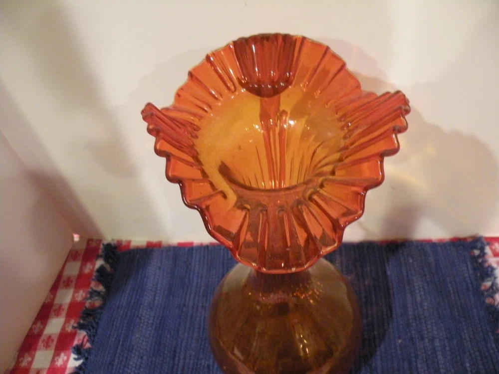 This stunning mid-century orange glass pitcher is a showstopper! The vibrant color and elegant ruffled edge make it a perfect statement piece. The rippled stem and smooth handle add a touch of vintage charm, while the generous size makes it practical for serving. Flawless condition—no chips or cracks. Shipping options are flexible too. Absolutely love it!