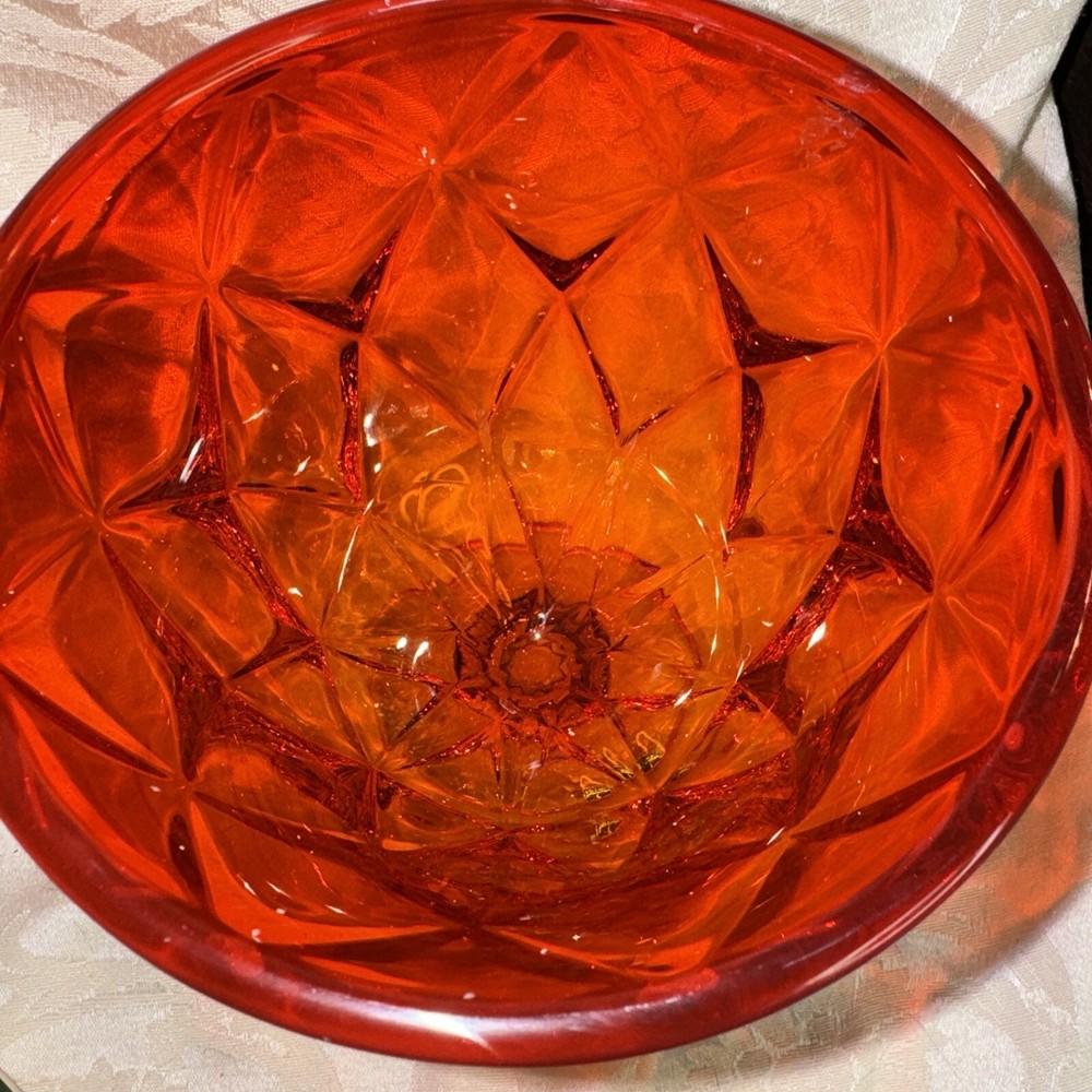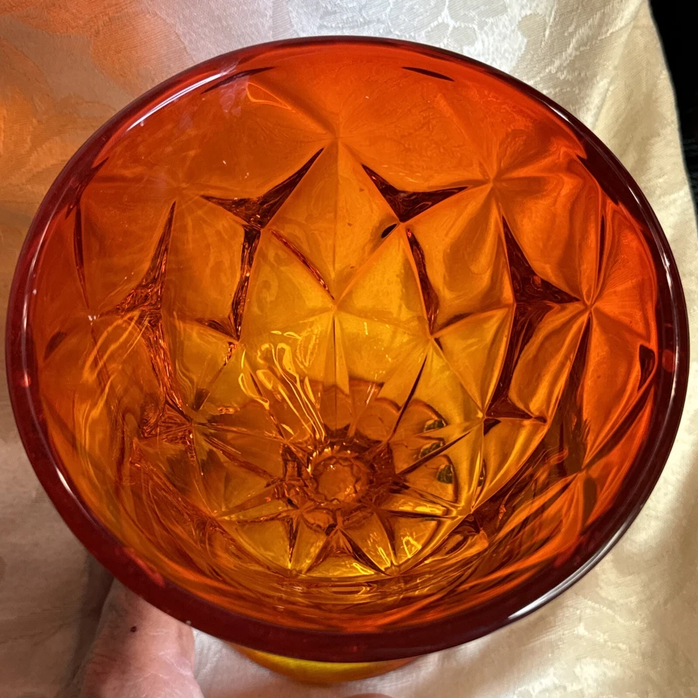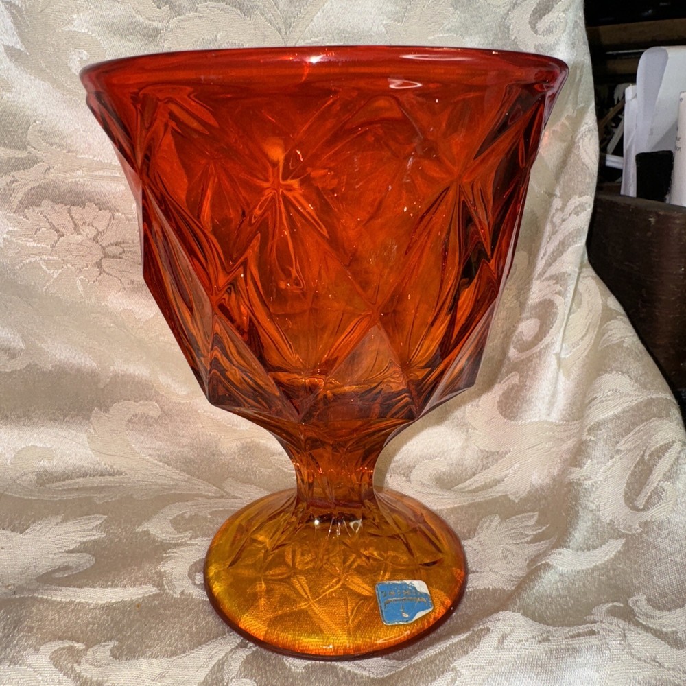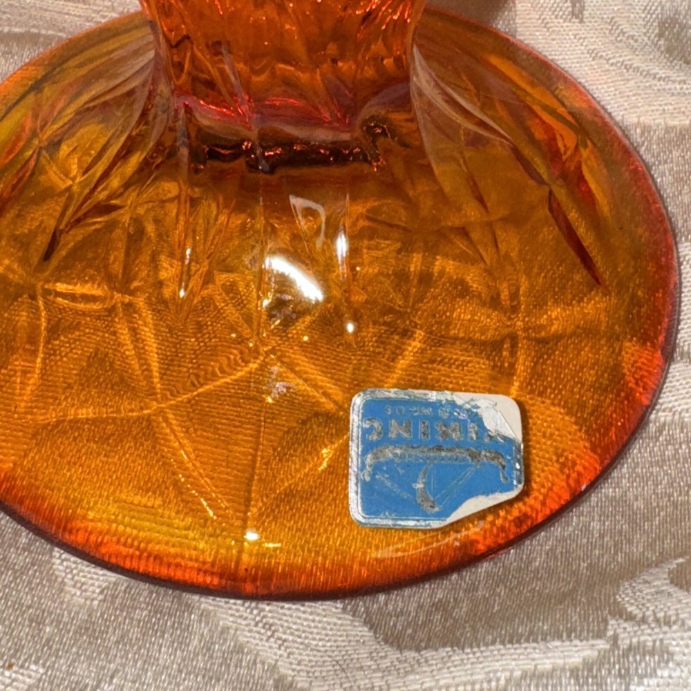 Pictures are part of description. Please ask questions needs a little more cleaning. I see some dripped wax beautifully colored orange persimmon Viking sticker on glass no chips or dings excellent sha...