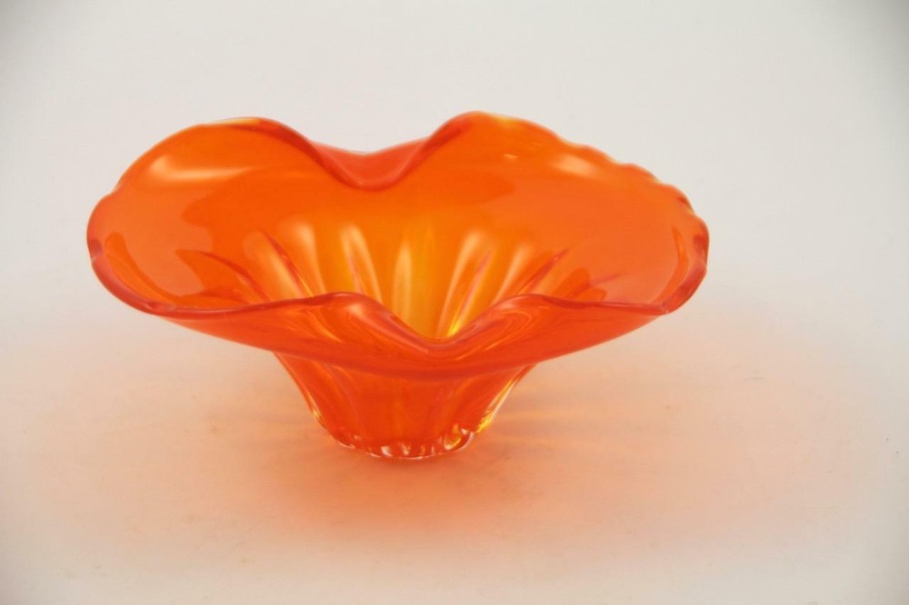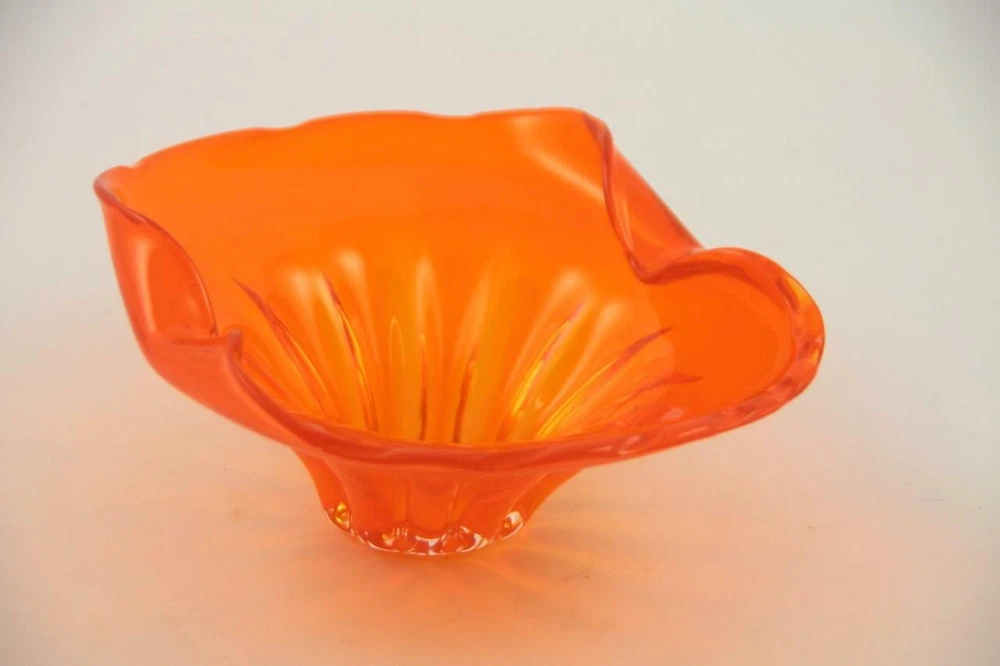 Mid Century Vintage Bright Glowing Orange Free Form Art Glass Bowl~Viking? Mid Century Vintage Bright Glowing Orange Free Form Art Glass Bowl~Viking? Click images to enlarge Description For your consideration..... Vintage bright persimmon orange glass bowl Measures approx. 6 3/4" x 5 1/2" x 2 3/4" high Maker is unknown Condition Very good vintage condition Free of chips & cracks Has a few light scratches mostly on the exterior base Has a few manufacturing bubbles, indents on the rim & a rough cut bottom All shown Please Note: Pictures are also part of the description & condition. Please click on photos to enlarge. Payment Immediate payment is required Before paying, please make sure your "Ship To" address is correct. If it is incorrect, there is absolutely nothing we can do once we ship your item US Citizens: Please note that a Sales Tax may apply: Based on applicable tax laws, eBay will calculate, collect, and remit sales tax on behalf of sellers for items shipped to customers in certain states. For a complete list of states please see the Ebay Tax & Import page located in the Ebay Site Map under “Tax”. Shipping Did you move recently? If so, please make sure your Ship To address is correct in your Ebay account & payment account. If your item is shipped to an old address, there is absolutely nothing we can do to stop it Shipping Charges: All items will ship via USPS, UPS or FedEx with Tracking & Insurance based upon the discount we get from Ebay, USPS, UPS & FedEx. All shipping carriers are now charging for DIM size as well as weight & distance. Large items, heavy items, even lightweight large items will be expensive to ship. We have no control over this. Free shipping: We do not offer Free Shipping. Instead, we offer LOW shipping rates based upon the discount we get from Ebay, USPS, UPS & FedEx. All items are shipped with FREE Insurance & FREE Delivery Confirmation. Combined Shipping: Is available on most items when you use the Shopping Cart . Ebay will calculate a discount for you at checkout. Click on the Shipping & Payments Tab for details. Your discount will be in Green. International Shipping: All items ship using Ebay's International Shipping Program . Import duties, taxes, and charges are not included in the item price or shipping cost. These charges are the buyer's responsibility & may be required upon purchase, pick up or upon delivery. Please check with your country's customs office to determine what these additional costs will be prior to bidding or buying. Failure to pick up: For items returned to us due to failure to pick up at the Post Office or any other drop site, only a partial refund of the purchase price will be issued. Ebay fees, shipping costs, taxes and a restocking fee will apply. Terms of Sale Returns: Can be initiated by using Ebya's RMA Form within 30 days from the time of purchase. Returns will not be accepted due to: Buyer's remorse, Because you changed your mind, Its not what you expected, You did not read the listing or review all the pictures we provided, Has been used, worn, washed, altered, played with, damaged, tags removed or was sold "As Is" Or you claim someone in your family made the purchase without your knowledge & permission. Buyer Pays For Return Shipping Item bust be returned using all original packing materials otherwise we will not issue you 100% of your purchase price. Due to rising costs of shipping materials, a minimum of $10.00 will be deducted from your refund. If you send the item back & it arrives damaged, it will be your responsibility to file an Insurance Claim & no refund will be given. After inspecting the item, a refund will be given on the purchase price only. Per Ebay policy, if an item is returned after the due date & the Return is closeed, no refund will be given. We do not offer exchanges or replacements. We do not guarantee or warranty vintage electronics & anything mechanical, nor is it implied. Contact Us DAMAGED ITEM POLICY: We carefully pack each & every item with sufficient packing material to ensure a safe journey. Unfortunately, accidents do happen & sadly an item may arrive damaged. It is just as upsetting for us as it is for you. Should this happen, please send us an email using the Ebay messaging system the day the item arrives. Please include several CLEAR & BRIGHT pictures of the damaged item, box & packing materials along with your phone number that the shipping company can reach you at. We will then file an insurance claim using the information you provided us with. Once the claim has been approved & we receive the insurance funds, we will refund your account. Please keep in mind that this process can take up to 4 weeks. This is something we have no control over. Please be sure to hold onto the damaged item, box & packing materials as you may be contacted by the shipping company. USPS may require you to bring these items to your local Post Office for inspection. If this procedure isn't followed, the claim will be denied. Should the claim be denied for any reason, we will not issue you a refund for the damaged item. Reimbursement will be for the amount that was insured only. Shipping charges are not eligible for reimbursement as stated on all the carrier websites. More information about insurance claims can be found on the USPS, FedEx & UPS web-sites. Get images that make Supersized seem small. Showcase your items with Auctiva's Listing Templates! THE simple solution for eBay sellers.