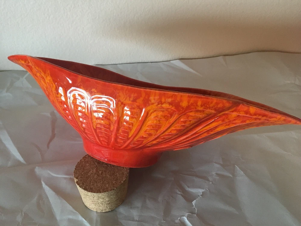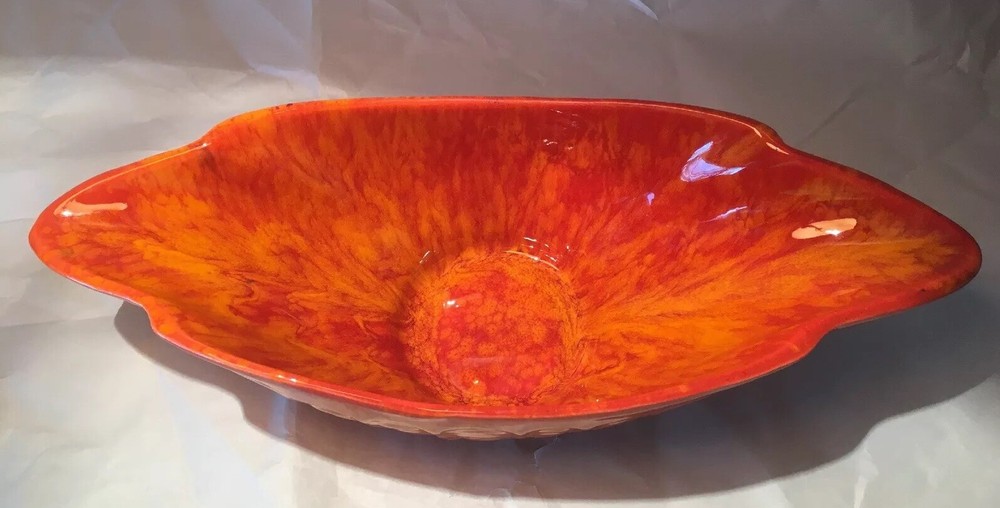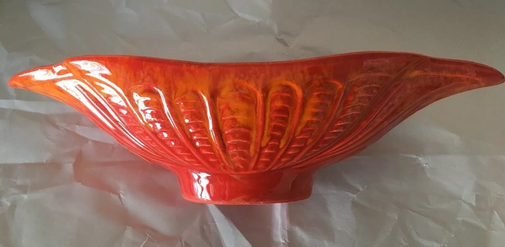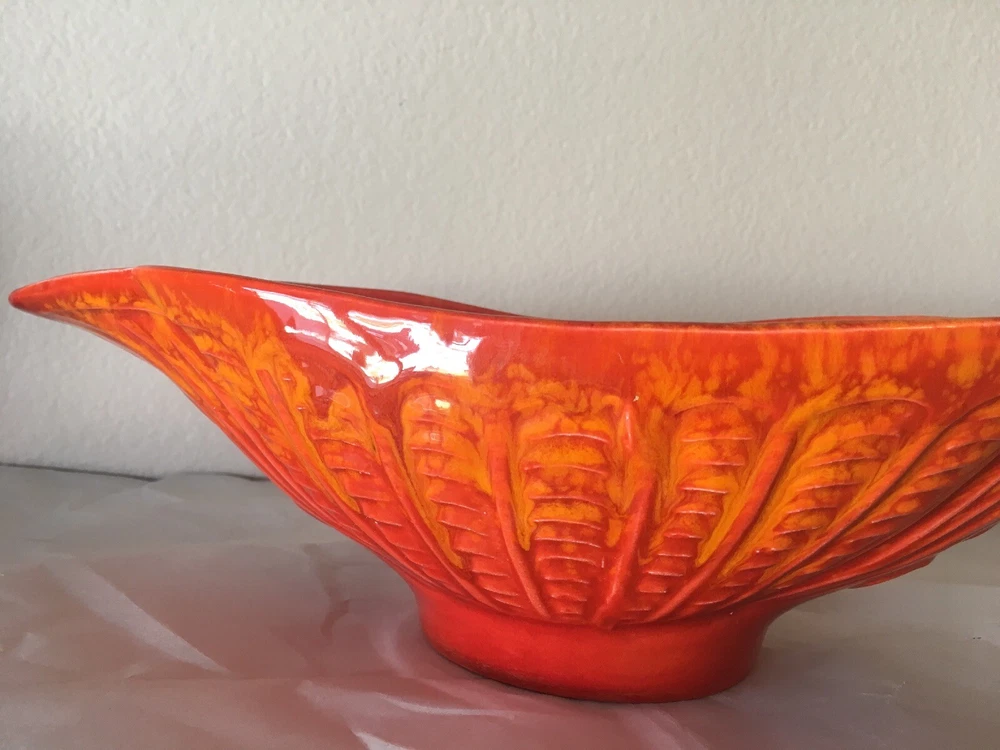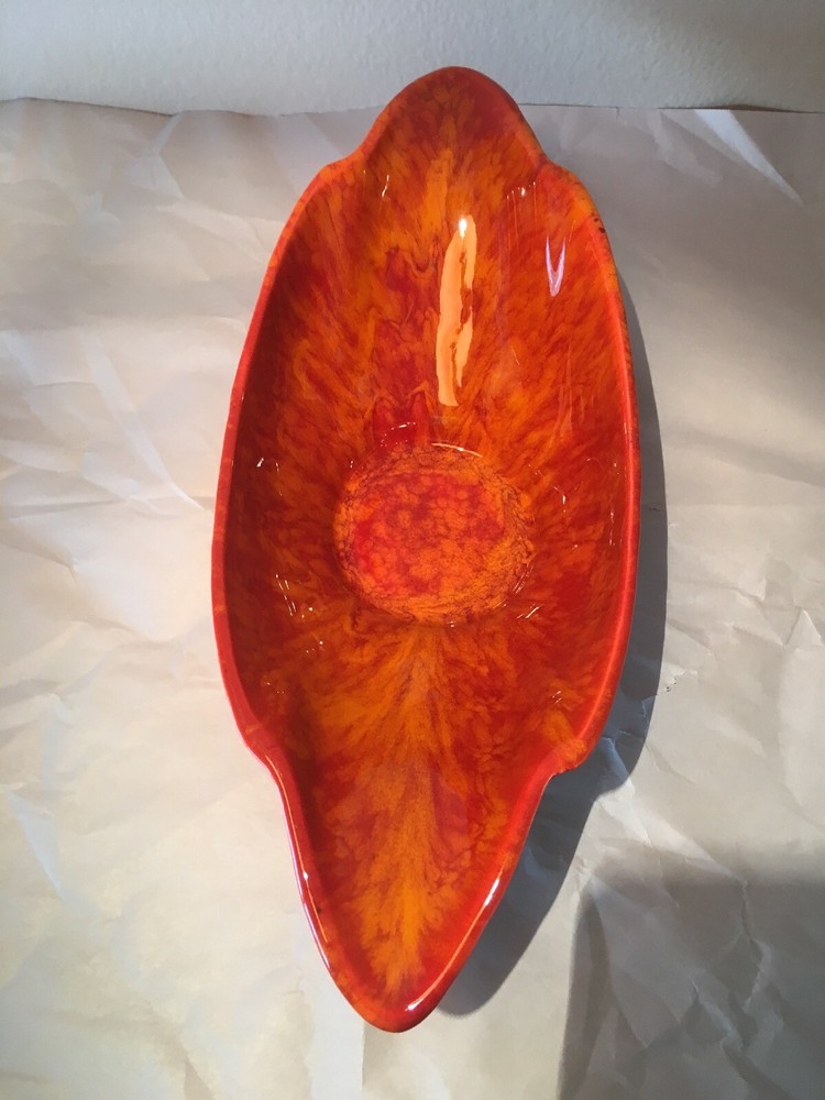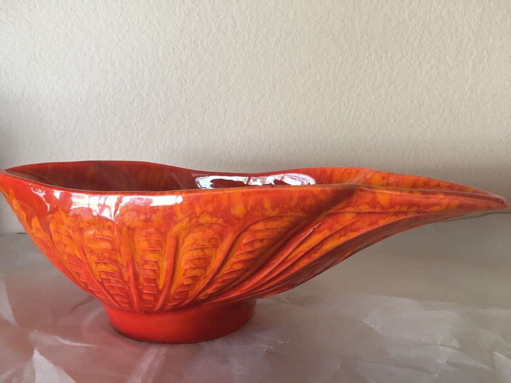 Mid Century Vintage Cal Style Pottery 287. Burnt orange bright color. Super cool dish. No cracks or chips or scratches. About 14 1/2 inches long, 5 3/4 inches wide and 3 1/2 inches high. Weighs 1.8 pounds. Condition is used but excellent, You will not be disappointed. Please see pictures. Check out my other listings. Shipped with USPS Priority Mail. Thank You.