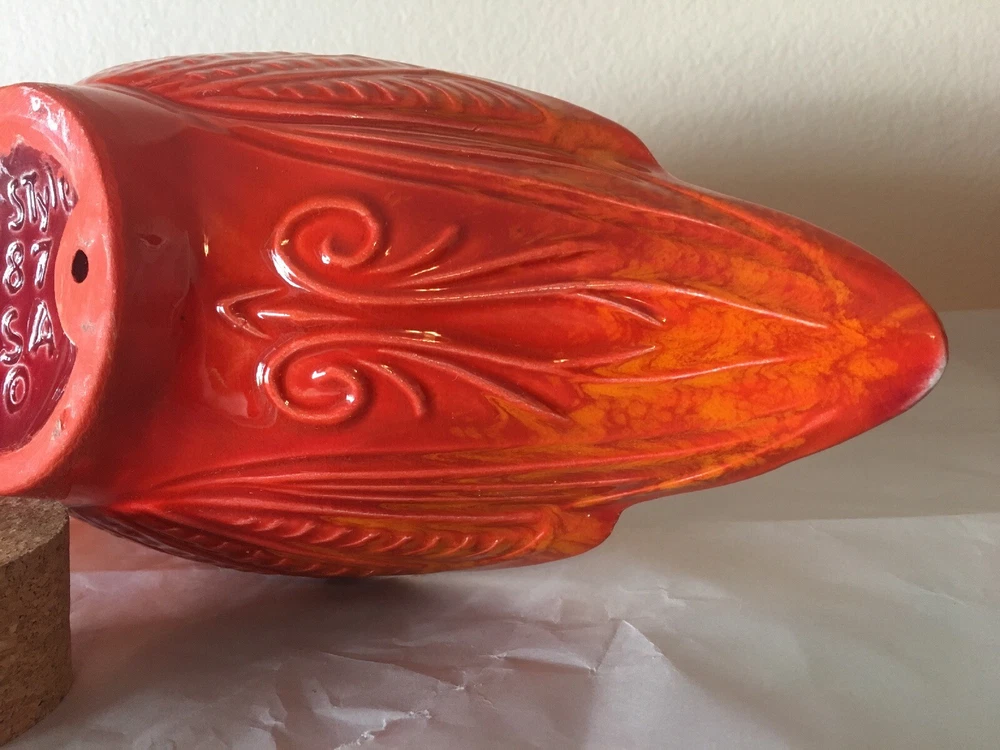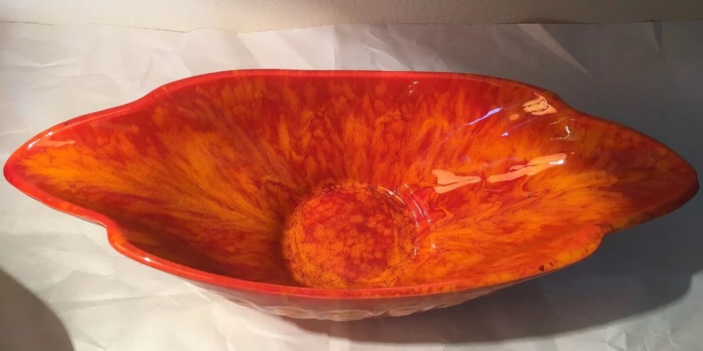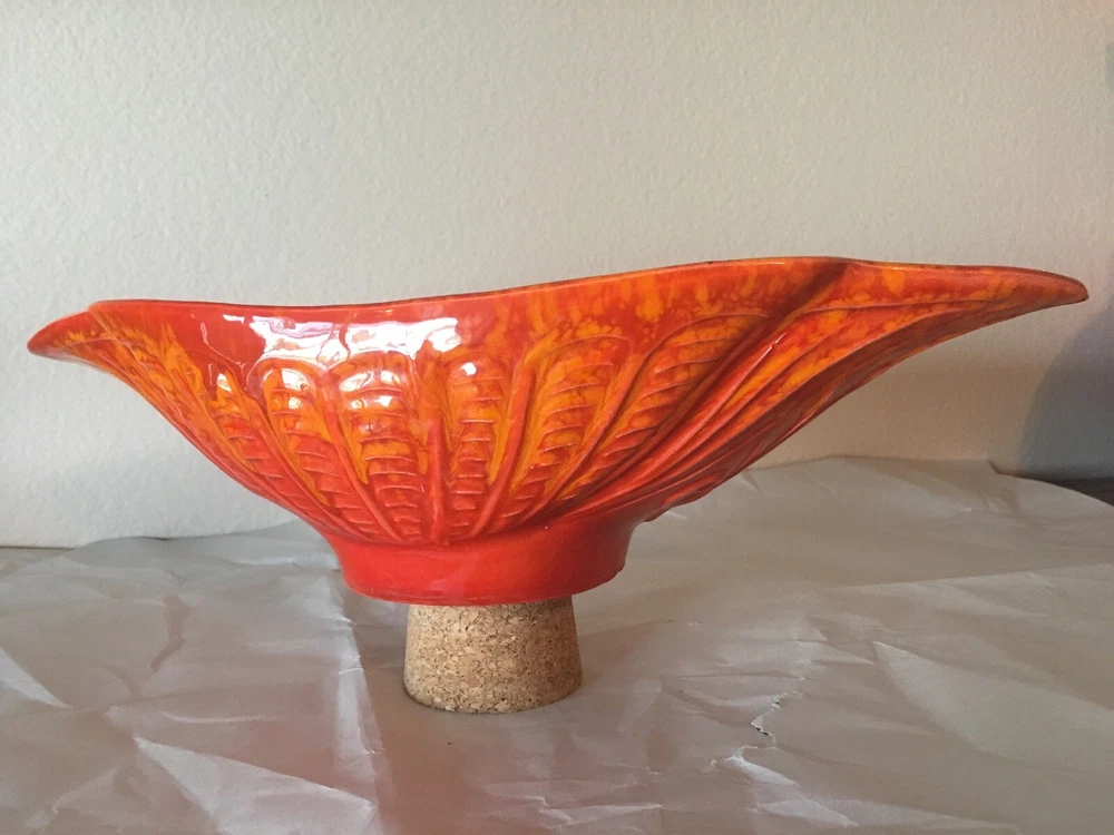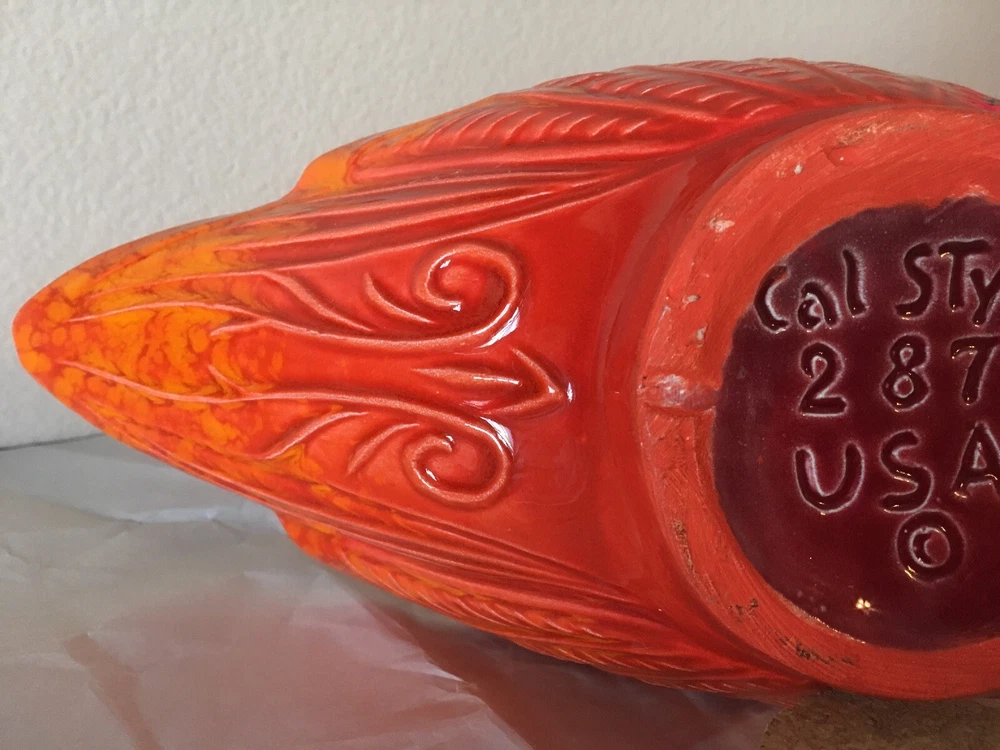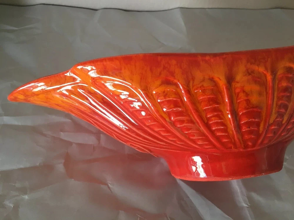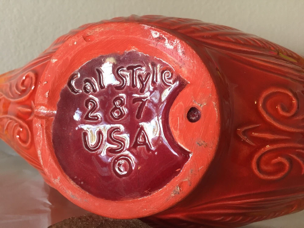 Mid Century Vintage Cal Style Pottery 287. Burnt orange bright color. Super cool dish. No cracks or chips or scratches. About 14 1/2 inches long, 5 3/4 inches wide and 3 1/2 inches high. Weighs 1.8 pounds. Condition is used but excellent, You will not be disappointed. Please see pictures. Check out my other listings. Shipped with USPS Priority Mail. Thank You.