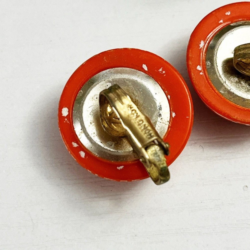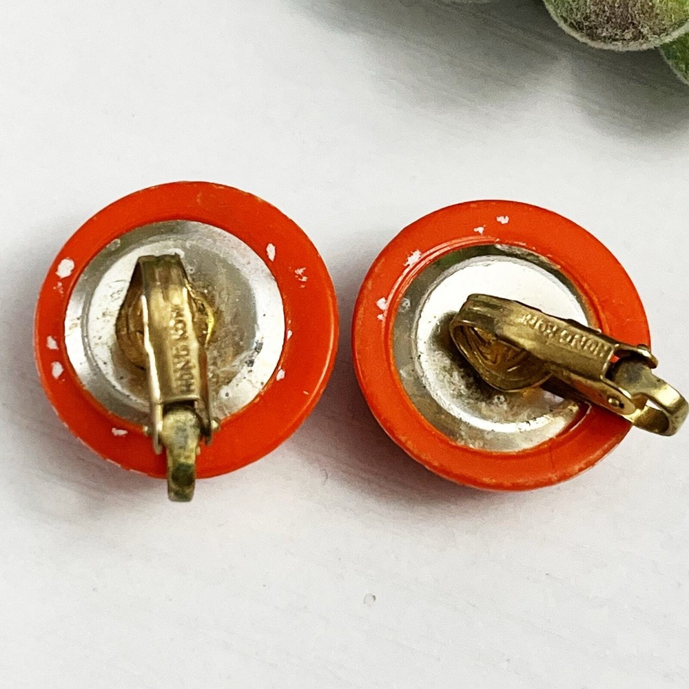 <![CDATA[<div>Vintage Etched Orange & White Floral Button Clip Earrings Hong Kong Mid Century. Marked HONG KONG on the back of the clips. 3/4" wide. Excellent vintage pre-owned condition. Ships same or next day. All photos are of the actual item for sale. Jewelry and clothing added daily!