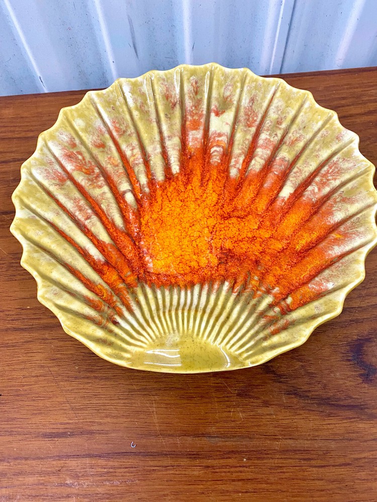 A FANTASTIC MID CENTURY SCALLOP SHELLED POTTERY PLATTER - MADE BY McCOY - MARKED #901. STUNNING COLORS - ORANGE GLAZE - NO FLAWS - CHIPS ECT MEASURES 12" ACROSS. "" What is sought with difficulty is discovered with more pleasure "" St Augustine. FROM KITCH TO HYGGE. STEVE'S COLLECTABLE S IS A CELEBRATION OF MID CENTURY MODERN LIFESTYLE ...FROM ATOMIC AGE AMERICANA, THE GROOVY 60s AND 70s TO THE QUIET BEAUTY OF SCANDINAVIAN INSPIRED DESIGN. PLEASE VISIT OUR SISTER STORE STEVESVINTAGECLOTHING https://www.ebay.com/stevesvintageclothing FOR ALL YOUR VINTAGE FASHION NEEDS. YOUR ONE STOP SHOP FOR ALL THINGS MID CENTURY MODERN - HOUSEHOLD GOODS , FASHION, BOOKS, TOYS ...... AND JUST FUN STUFF LIKE GRANDMA USED TO HAVE I AM PASSIONATE ABOUT THE ITEMS I LIST, SO PLEASE DO NOT HESITATE TO ASK QUESTIONS ! I HAVE A VAST WAREHOUSE, SO IF ITS NOT LISTED HERE I COULD WELL HAVE IT. ASK ...AND I WILL GLADLY LOOK. I AM ALWAYS HAPPY TO COMBINE SHIPMENTS AND EFFORT TO FIND THE MOST COST EFFECTIVE SHIPPING AS POSSIBLE. I ALWAYS REFUND EXCESS SHIPPING . I WILL ONLY SHIP PRIORITY MAIL TO COUNTRIES OF FORMER USSR AND CHINA , SO IF YOU PLAN ON BUYING PLEASE LET ME INVOICE YOU BEFORE PAYING. LARGE ITEMS CAN BE PICKED UP LOCALLY OR DELIVERY WITHIN 40 MILES OF NEW YORK ZIP 11530 CAN BE ARRANGED FOR A SMALL CHARGE. I MAKE EVERY EFFORT TO USE RECYCLED AND ENVIRONMENTALLY FRIENDLY PACKING MATERIALS . PLEASE ALSO NOTE : - THE 100 PER CENT RETURN POLICY !!!! SHOP WITH CONFIDENCE! IF THERE IS A PROBLEM PLEASE LET ME KNOW BEFORE LEAVING FEEDBACK AS I CAN ALWAYS FIX IT ITEMS IN MY SHOP ARE VINTAGE OR PRE-OWNED AND HAVE BEEN PREVIOUSLY USED BY SOMEONE ELSE. SOME ITEMS MAY HAVE IMPERFECTIONS SUCH AS CHIPS, MARKS, DISCOLORATION, NICKS, TORN OR MISSING PAGES, ETC. I TRY VERY HARD TO GIVE AN ACCURATE DESCRIPTION OF EACH ITEM AND ANY FLAWS, BUT MAY MISS SOMETHING. SO PLEASE CHECK THE PICTURES AND DESCRIPTION AND IF YOU HAVE ANY QUESTIONS PLEASE FEEL FREE TO EMAIL FOLLOW US ON : INSTAGRAM: stevecollectable