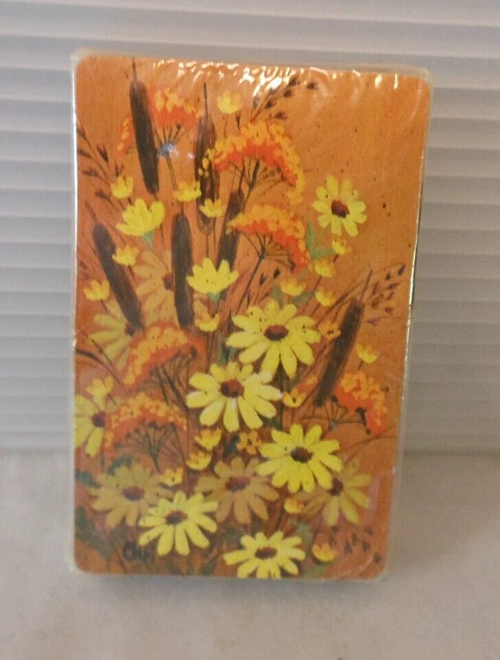 This set of vintage Nu-Vue Stardust playing cards is a must-have for any collector or enthusiast. Featuring a beautiful orange and brown color scheme, these cards depict daisies and other flowers from the United States. Made in the modern era (1970-Now), these cards are a great addition to any collection. The brand Nu-Vue is known for its high-quality playing cards, and this set is no exception. Perfect for those who love flowers or simply appreciate vintage items, these cards are sure to impress. Add them to your collection today!