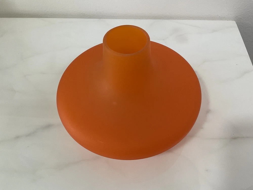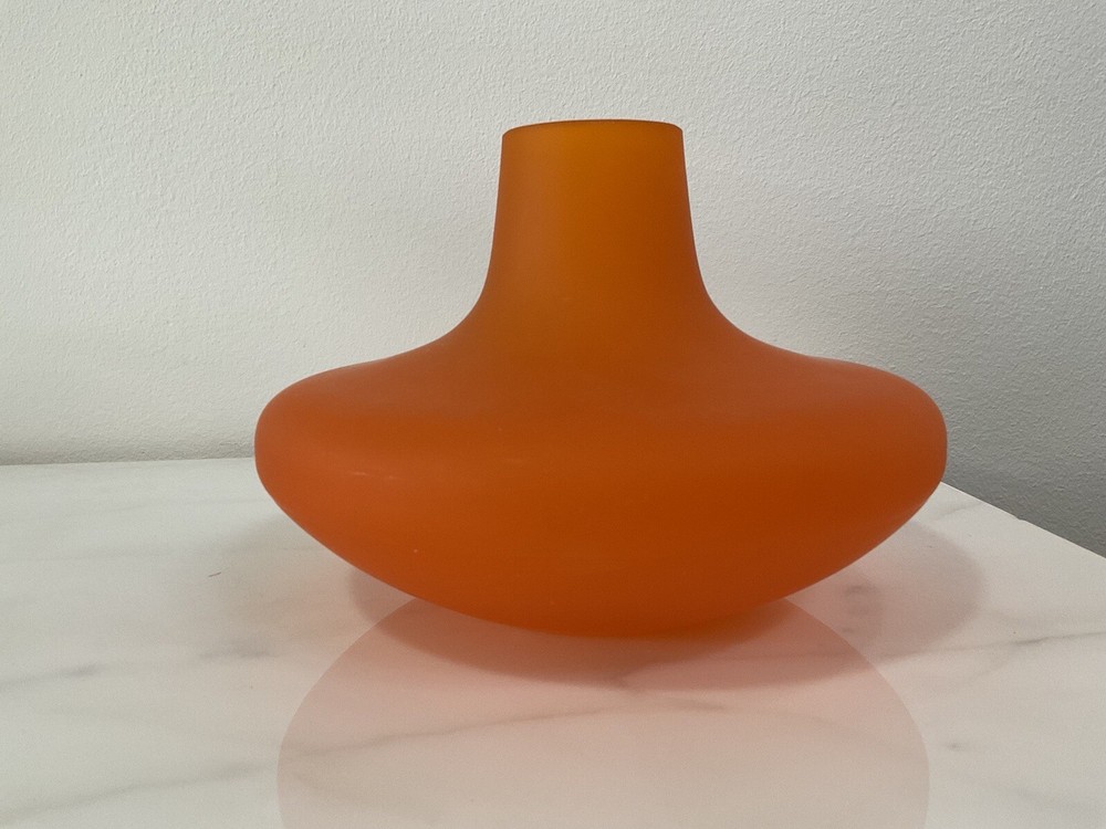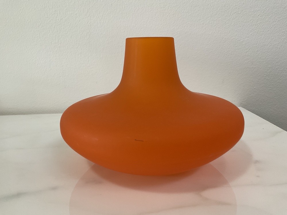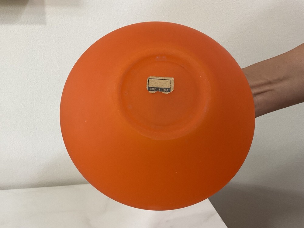 Mid Century Vintage Orange Vase Made in Italy. It shows some scuffs and scratches due to age and usage. Dimensions: Height: 5” Diameter: 7” Please refer to pictures for further details as they are considered part of the description and feel free to ask questions.