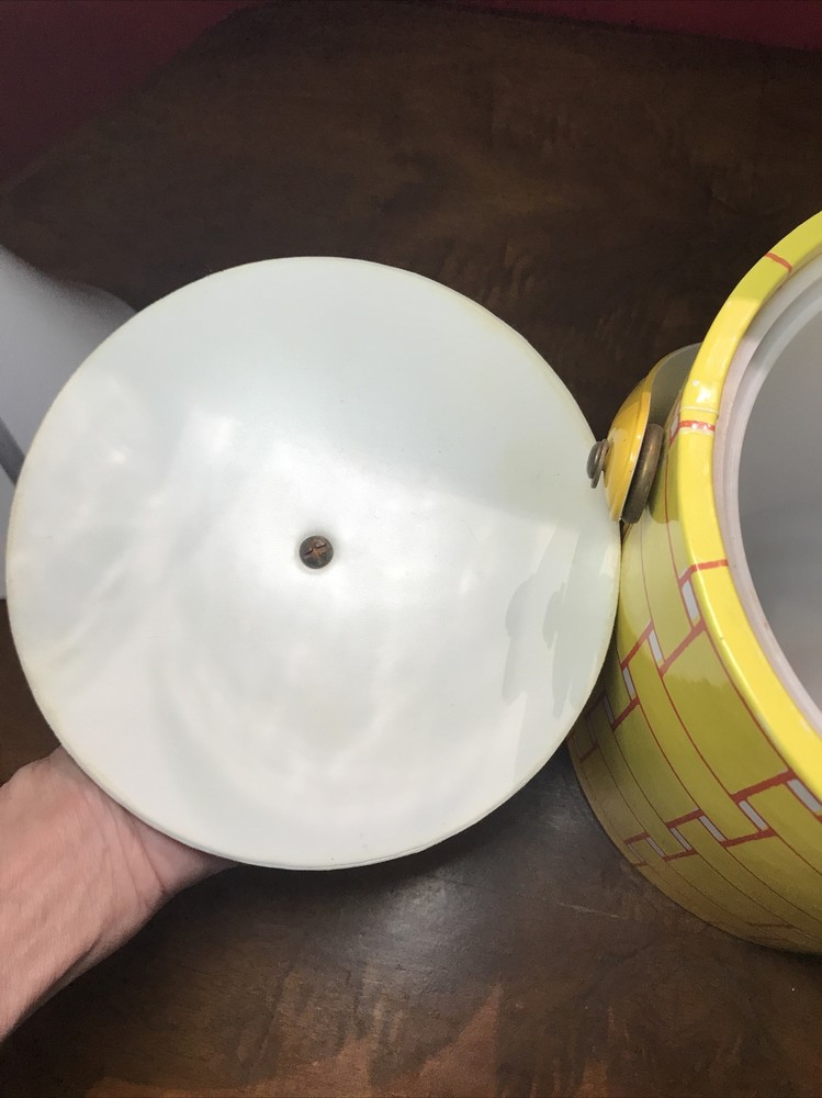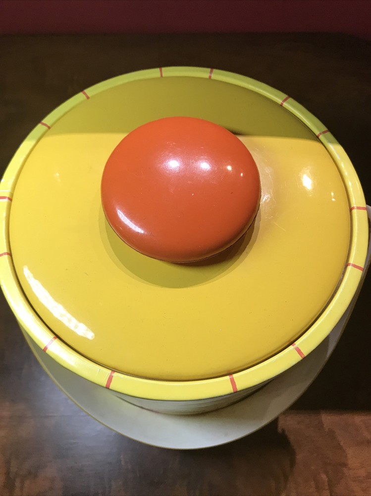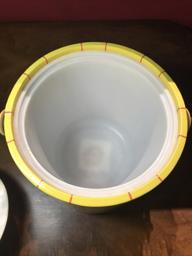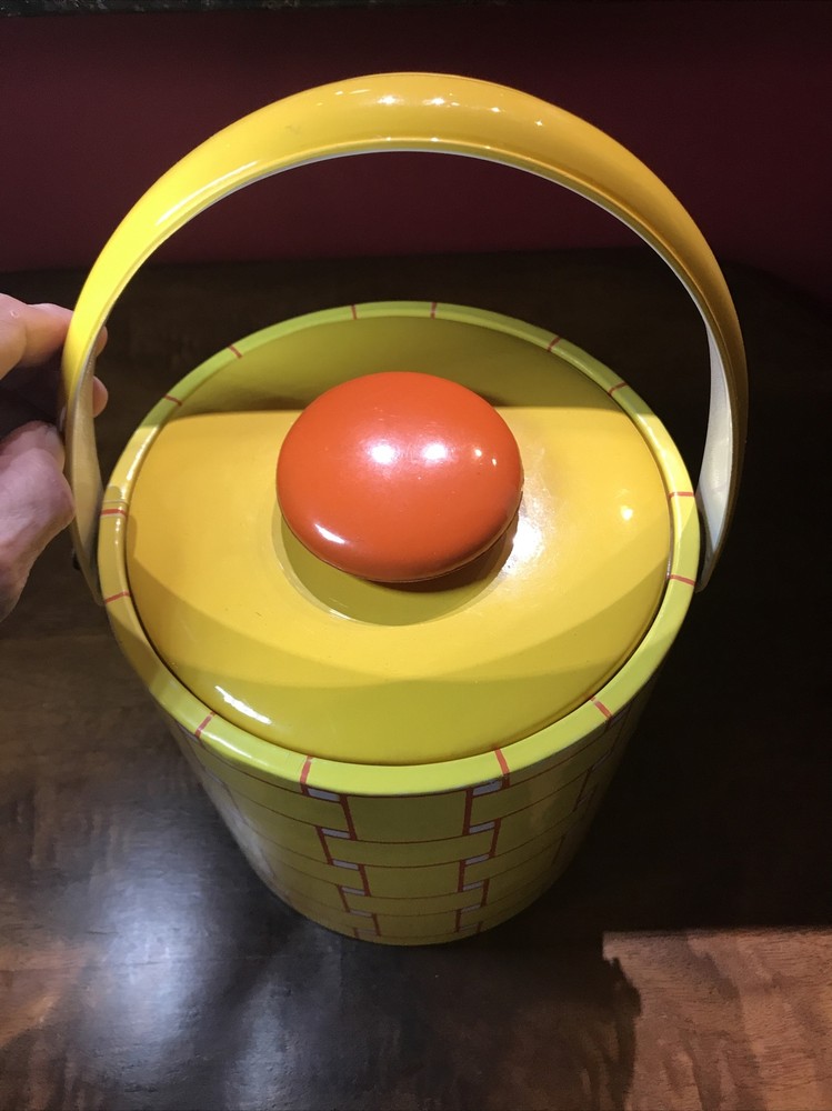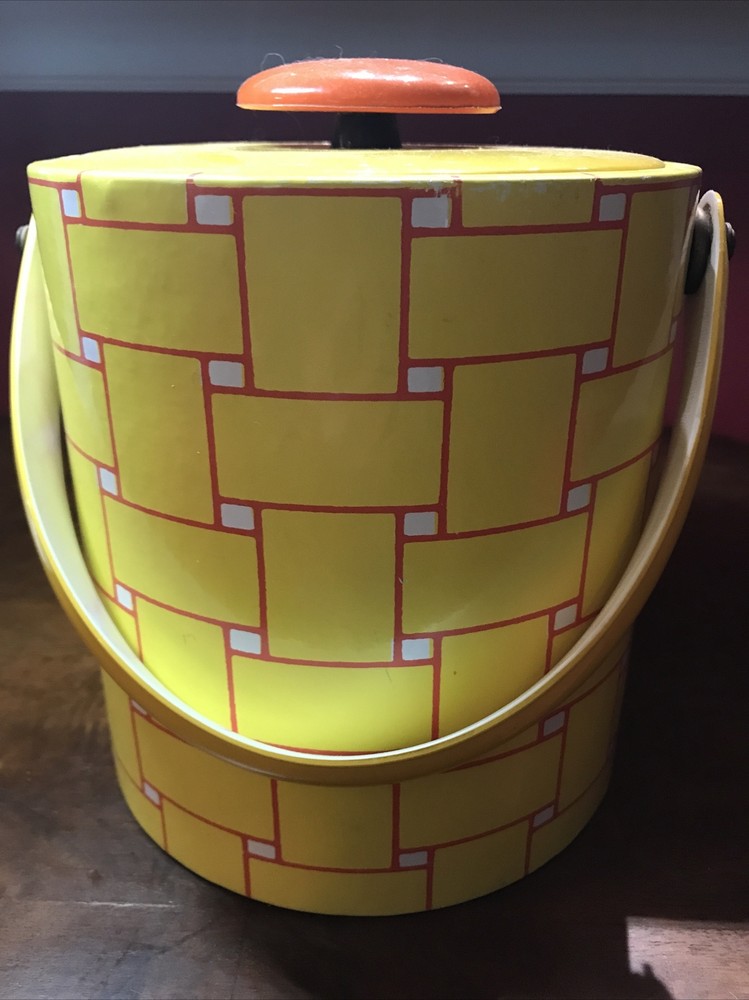 Nice condition and very clean. Last photo shows signs of age at seam. Standard size. Padded lid. MCM Ice Bucket, Yellow & Orange. Condition is "Used". Shipped with USPS Priority Mail.