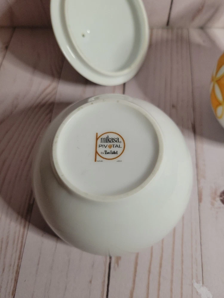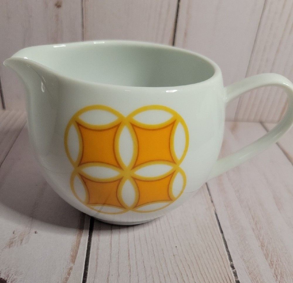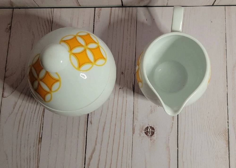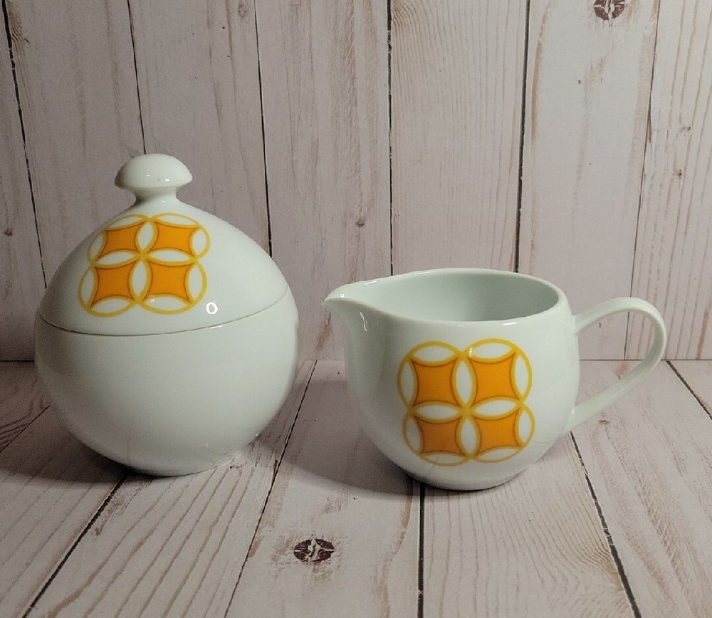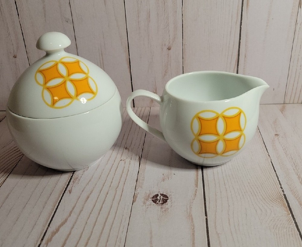 Mid Mod MIKASA PIVOTAL TANGENTS ORANGE Sugar Bowl & Lid CREAMER Ben Seibel VTG. GORGEOUS!!! Great MCM Retro sugar and creamer set . Excellent vintage condition
