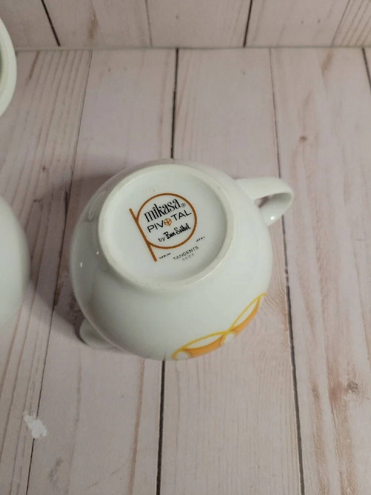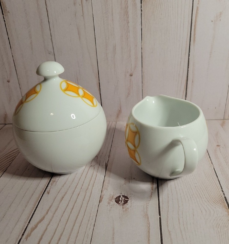 Mid Mod MIKASA PIVOTAL TANGENTS ORANGE Sugar Bowl & Lid CREAMER Ben Seibel VTG. GORGEOUS!!! Great MCM Retro sugar and creamer set . Excellent vintage condition...