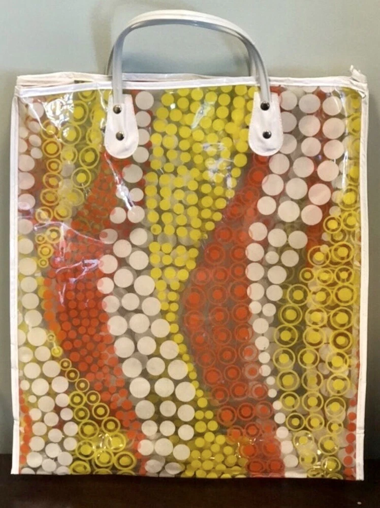 Mid Mod Vinyl Orange/White/Yellow/Clear Psychedelic Grocery Tote Bag....
