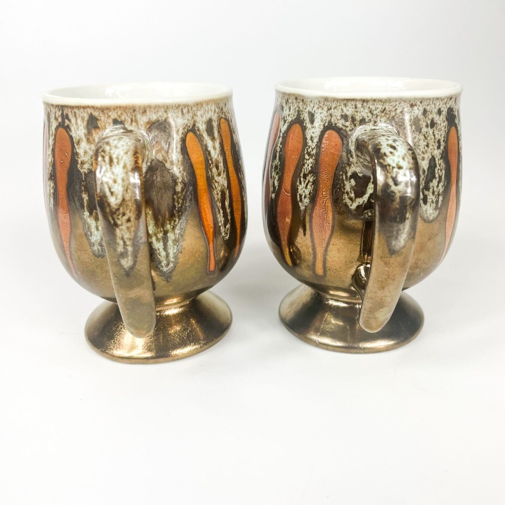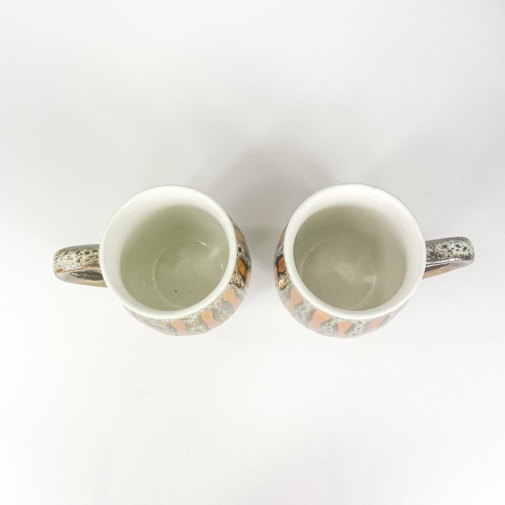 Mid century Modern Drip Glaze Copper Orange Mugs set of 2 4 1/9'' tall 2 3/4'' wide on top Made in Japan Condition: Pre-Owned Like New