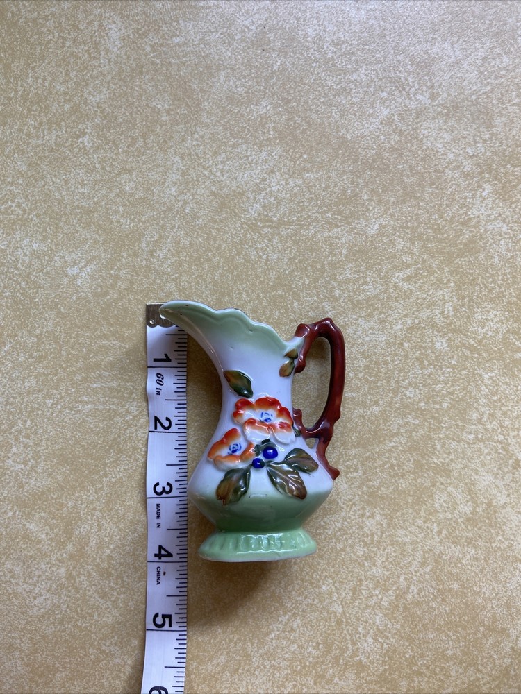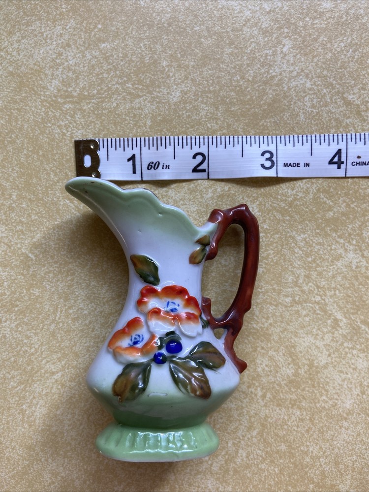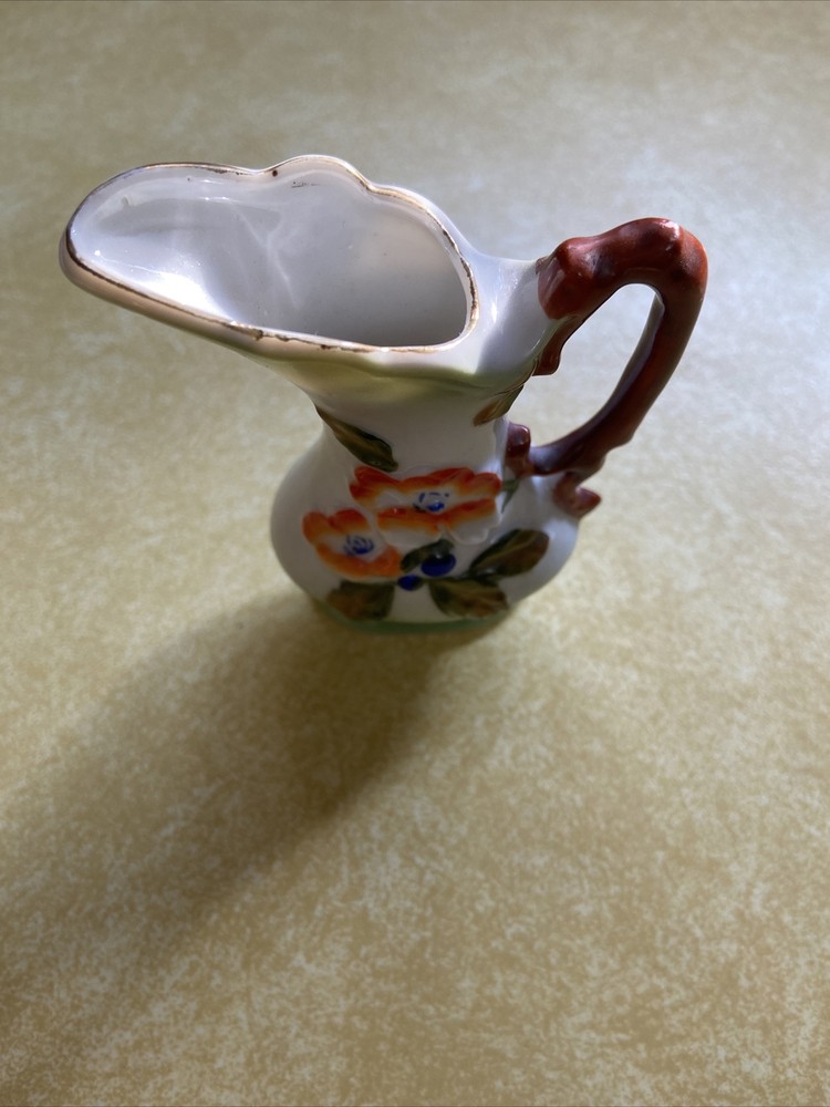 Mid century, decorative pitcher with orange flowers, hand painted Occupied Japan....