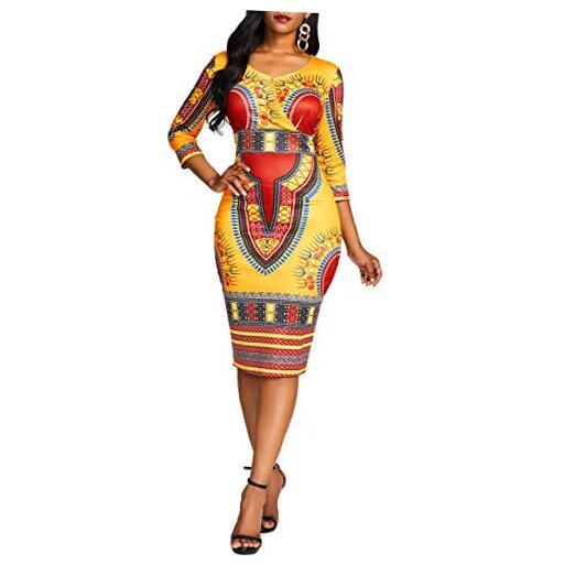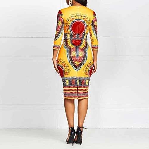 30 Days Return Policy Fast Delivery Trusted seller Mid-Calf V Neck Three Quarter Sleeve Print Women's Bodycon Dress African Midi Dress Product Description Material:Polyester.It is Soft. Size:M L XL XXL/ Color: Ochre. The short sleeve design with color block print, make you look sexy and elegance. Occasions: party, wedding, prom, cocktail, evening, club, bar or casual shopping ,banquet, prom, work etc. Body-flattering with color block style. Comfortable to wear, unique style, make you more beautiful, fashion, sexy and elegant. Before Purchase, please refer to Our Size Chart in the Picture or Product Description Shipping Returns Payment Shipping Shipping is FREE to all addresses other than APO/PO boxes in the lower 48 states. All our stock ships from US-based warehouses. Shipped via USPS or UPS (depending on location and package weight) Unless stated otherwise, all orders will ship within 24-72 hours of your payment being processed. Check our feedback to see the great reviews of FAST shipping we offer. Returns As our valued customer, we will do our best to make sure the product you receive arrives to you on time and as expected. If you are not satisfied with your purchase, please contact us within 30 days of receiving your order to process a return. Payment We currently accept payment via eBay managed payments only. Once payment is cleared, we will dispatch your shipment within 1-3 business days. Please refer to the "Shipping" tab for more information regarding shipping speed to your destination.