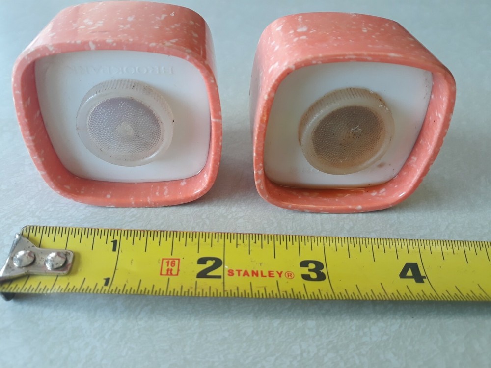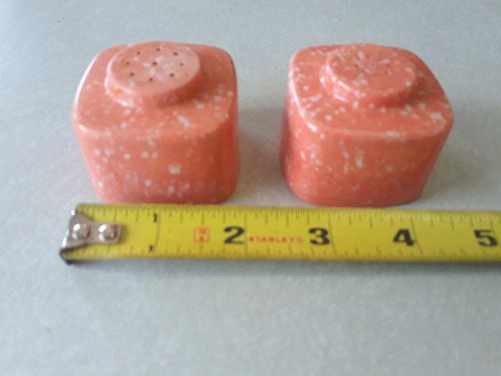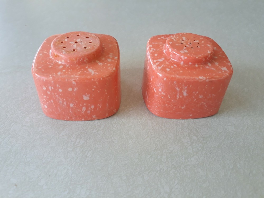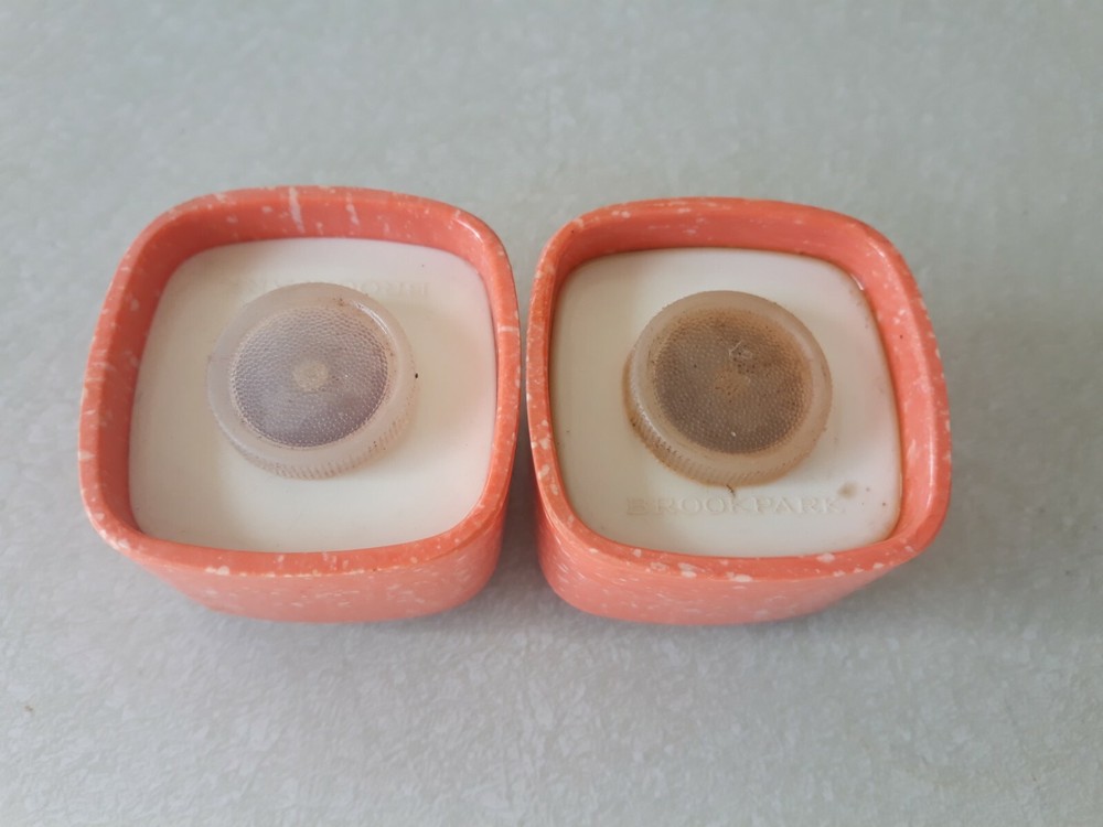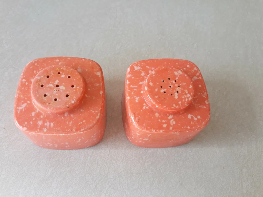 Mid-Century BROOKPARK Melamine Melmac Spatter Orange Salt & Pepper Shakers. Condition is good Useable-not chipped or broken.ut18