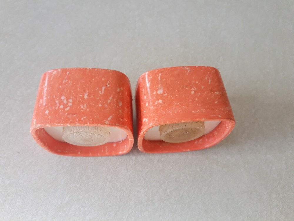 Mid-Century BROOKPARK Melamine Melmac Spatter Orange Salt & Pepper Shakers. Condition is good Useable-not chipped or broken.ut18...