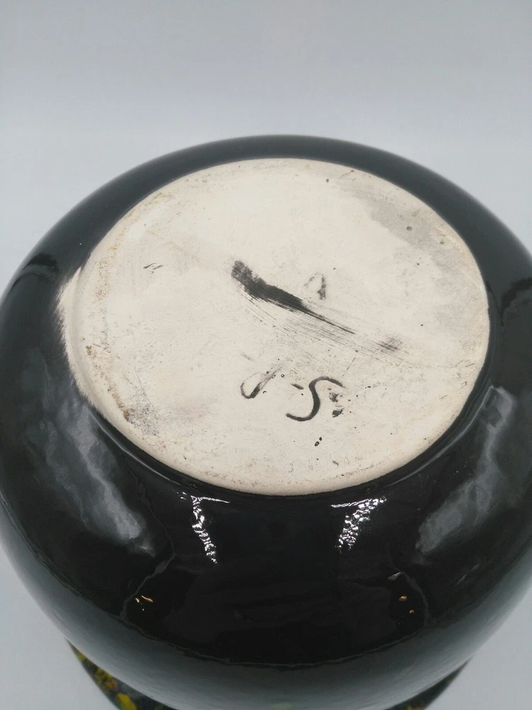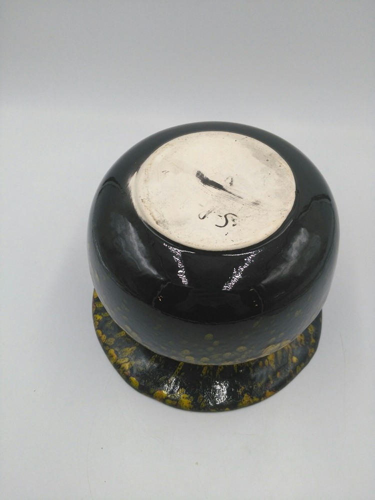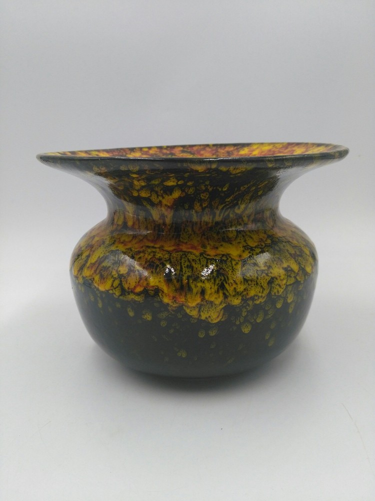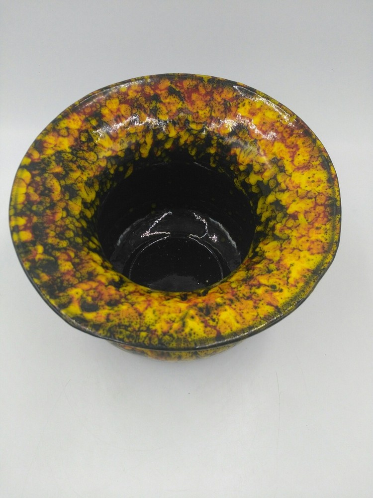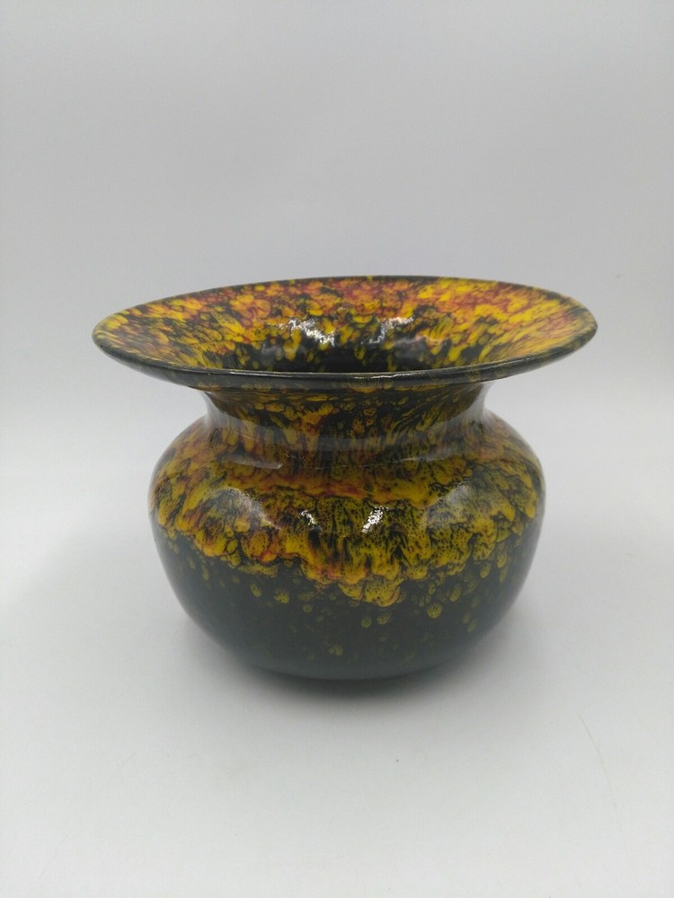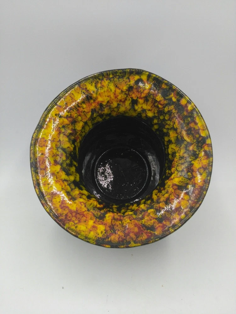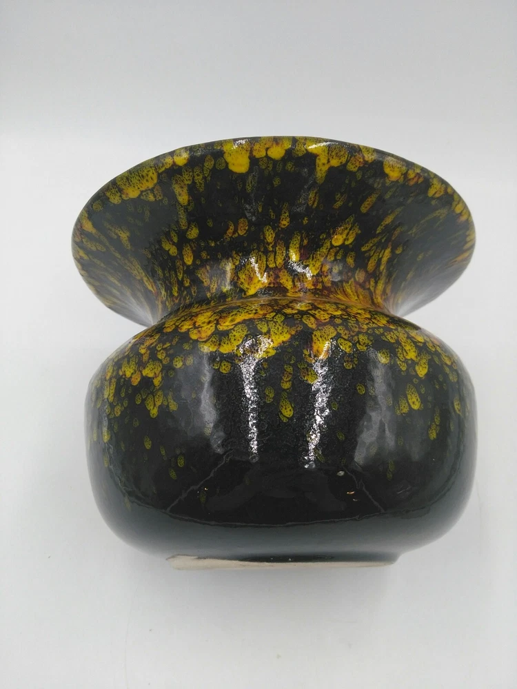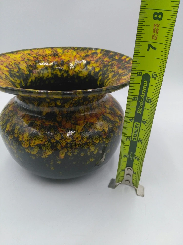 Beautiful Mid-Century Black Yellow Orange Drip Glaze USA Pottery Spittoon Shape Vase ... VASE IS ABOUT 5 1/2" tall and measures 7 1/2" wide at the top. No chips or cracks See all photos as they are part of the description. S59 Track Page Views With Auctiva's FREE Counter Ebay may charge sales tax on this transaction and remit that amount directly to your state. As the seller, I have no control over the sales tax charged to you.